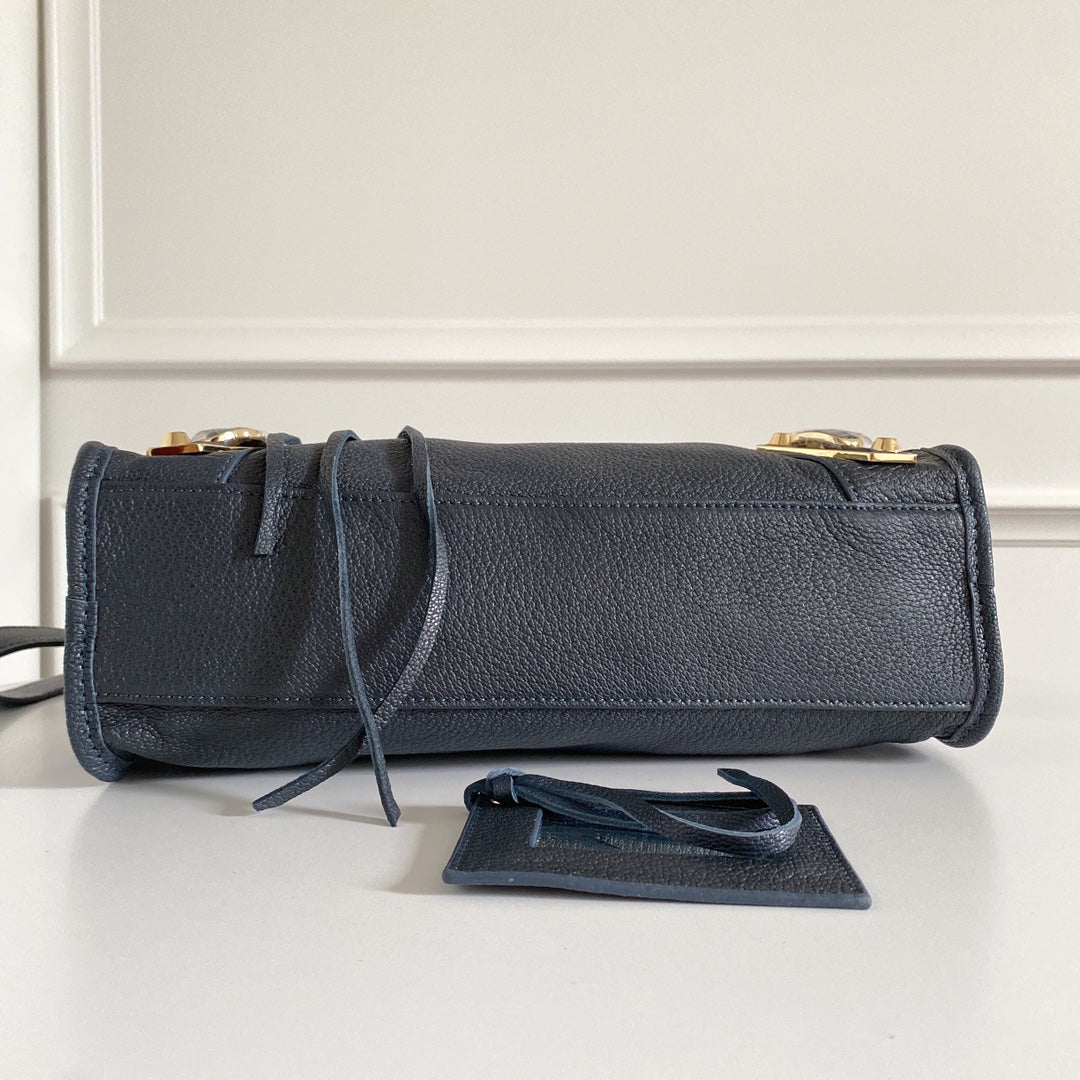 Elevate your style with our premium Italian goatskin motorcycle bag in a stunning sapphire blue. This Balenciaga-inspired masterpiece combines elegance and functionality, featuring a striking gold buckle that adds a touch of sophistication.