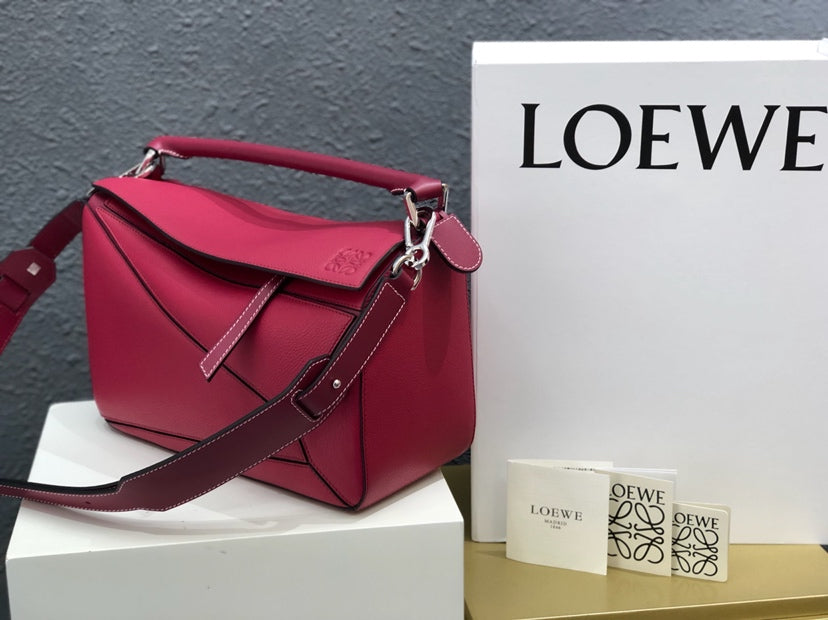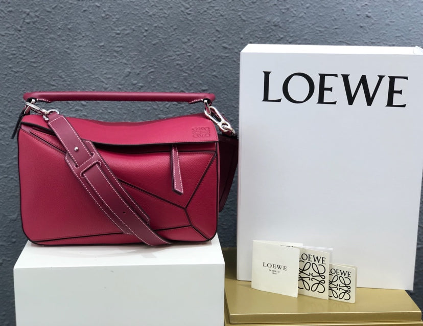 Raspberry Loewe Puzzle Medium - Luxury Leather Handbag