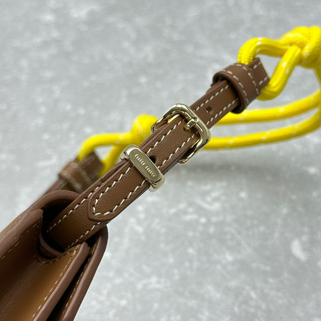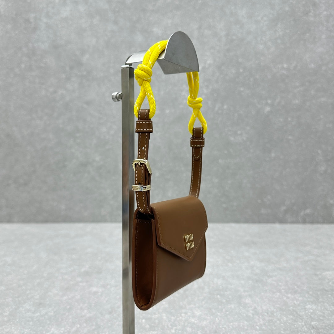 Introducing the new MIUMI Showcase Knotted Envelope Bag—your go-to small crossbody bag that combines retro charm with modern functionality. Made from premium leather, this eye-catching accessory features a unique drawstring shoulder strap, ensuring both style and comfort.