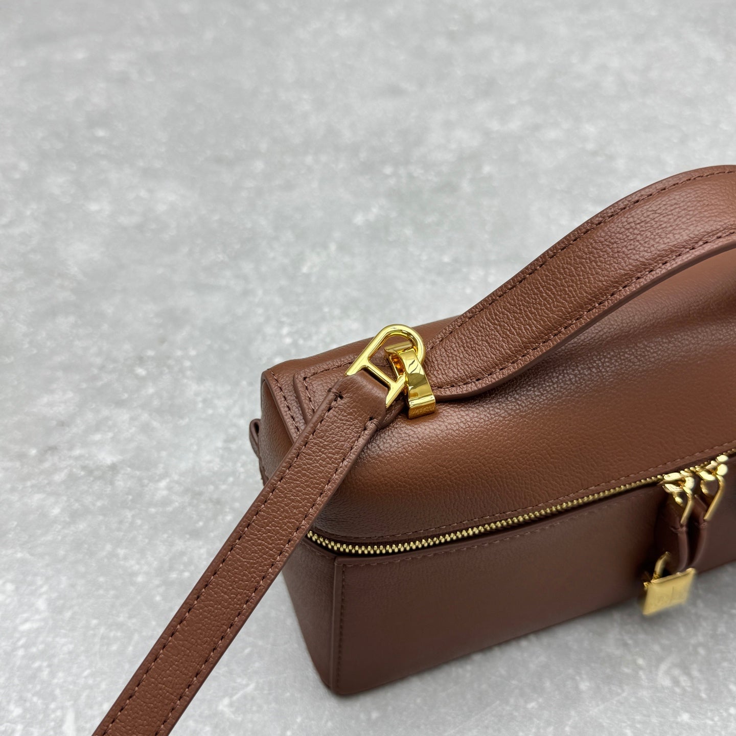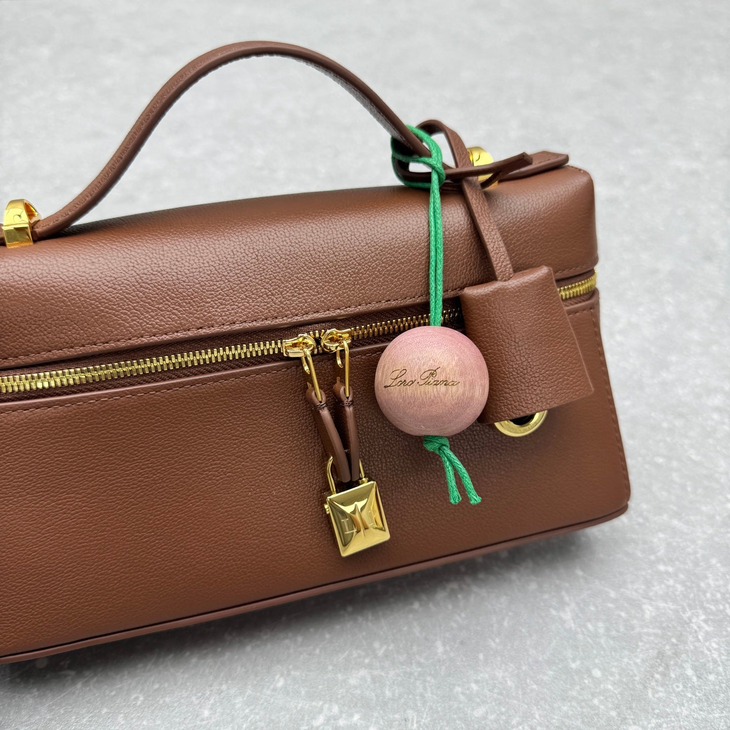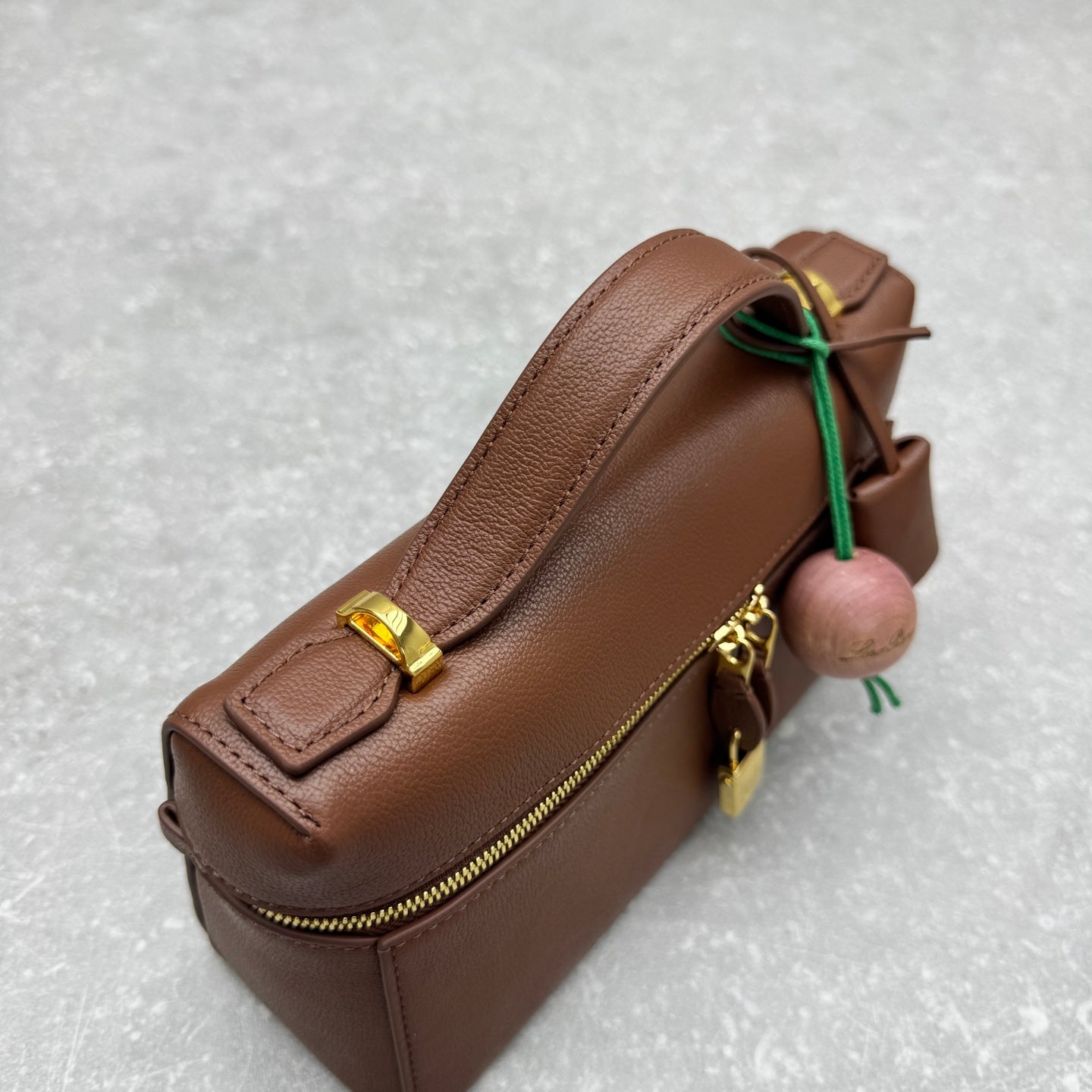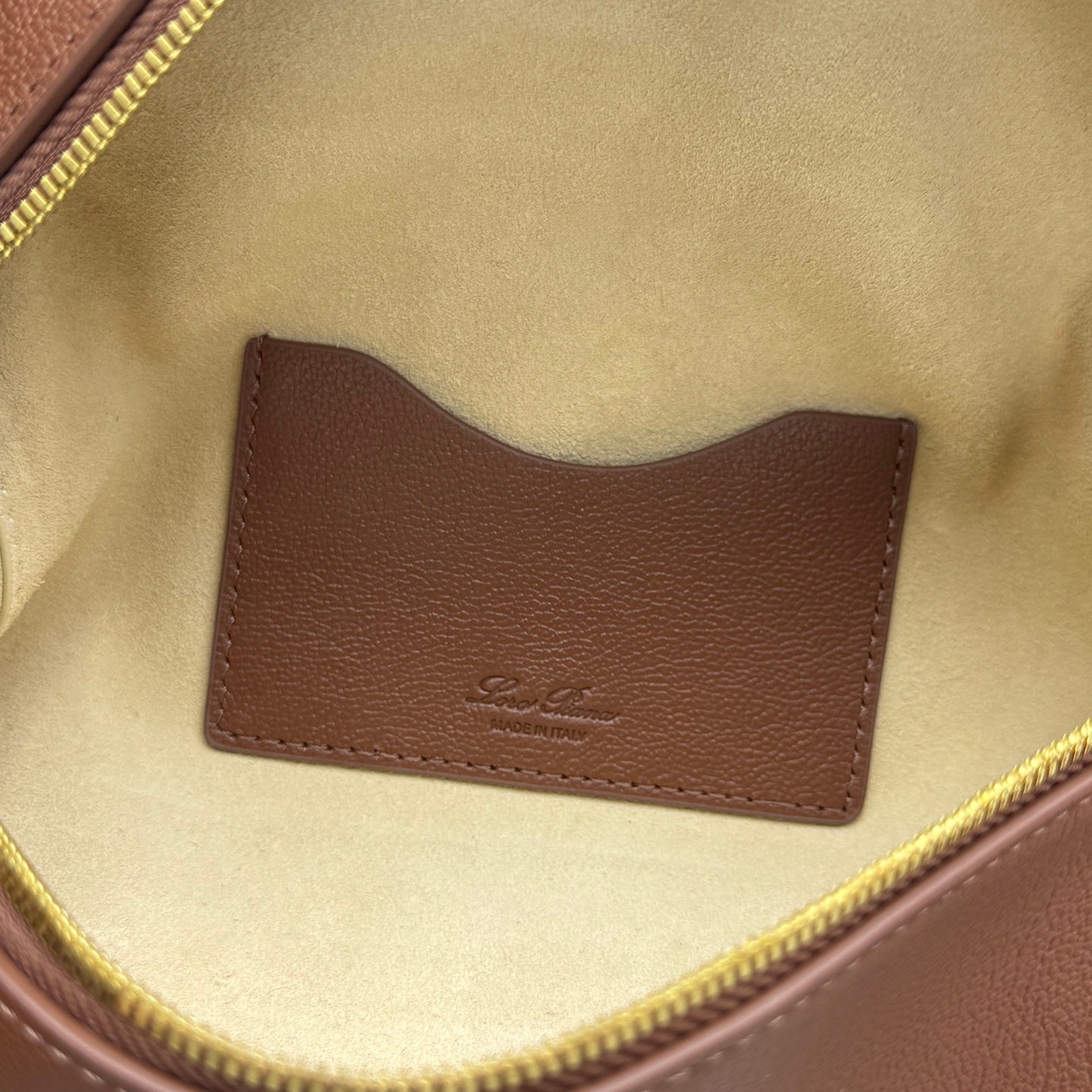 Introducing the Palmprint Brown L23 Bag, a sophisticated addition to your accessory collection. Crafted by Loro Piana, this bag features a classic lunch box shape that effortlessly embodies the timeless elegance of old-money style.