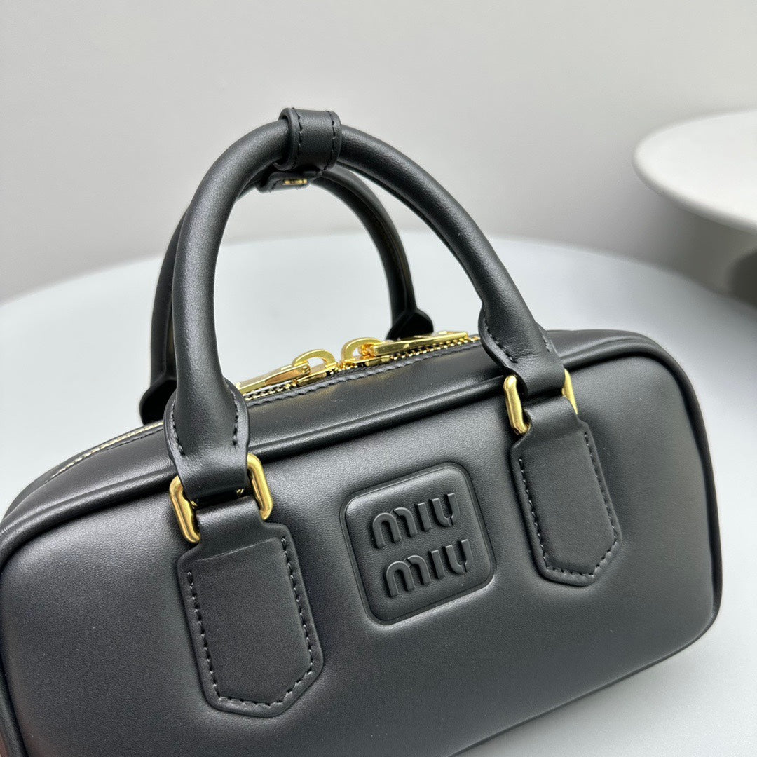 Introducing the Xiao Old Black Retro Small Square Bag by Miu — a perfect blend of style and functionality. This bag features a minimalist design that emphasizes its practical use. Crafted from soft, comfortable cowhide, the exterior is elegantly embossed with the brand logo. With a spacious interior, it serves as an ideal commuting companion or a stylish travel bag for short trips. Timeless yet modern, this bag is a must-have accessory for every fashionista.