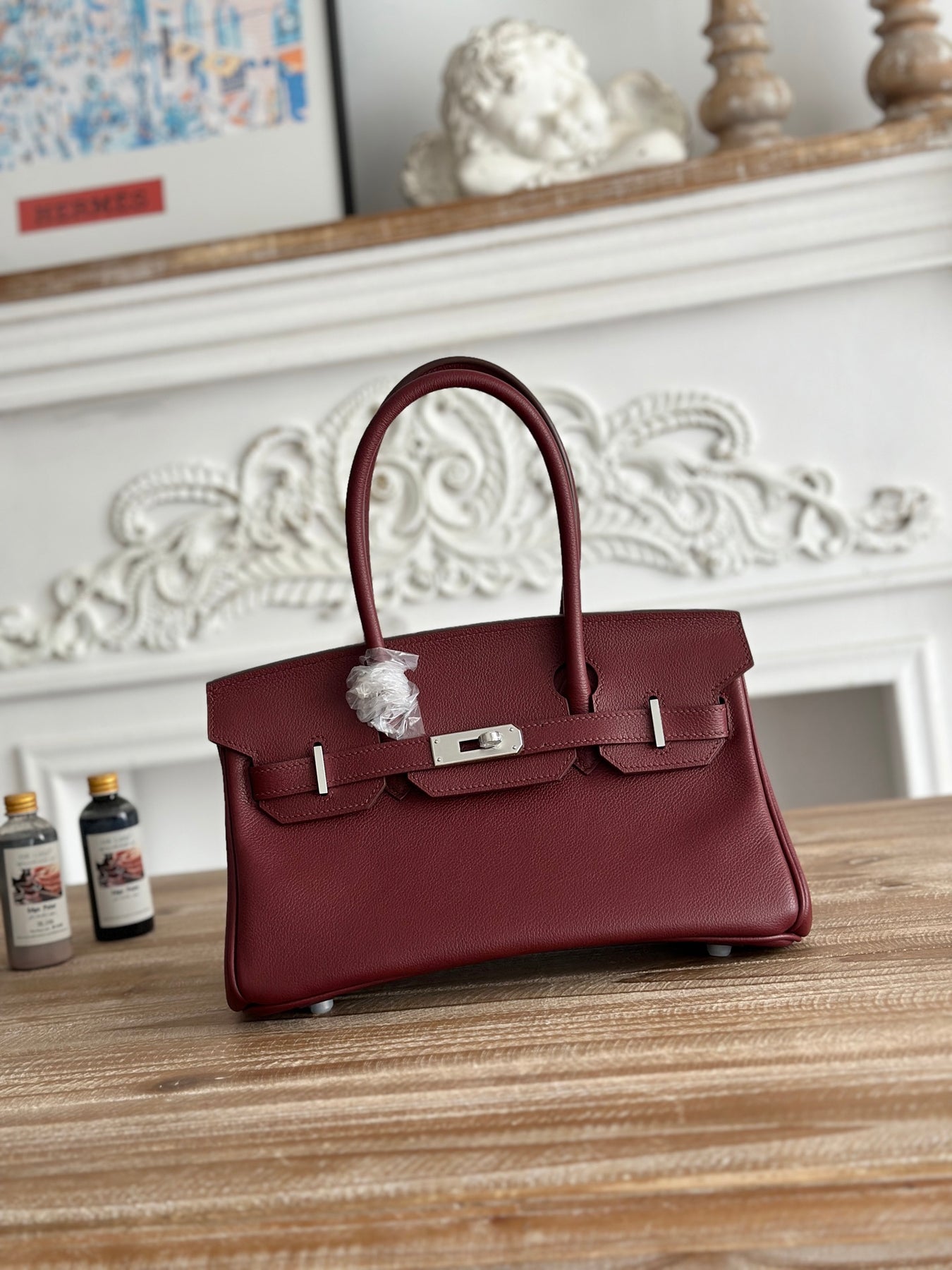 Discover the luxury of our Ruby Red Semi-Handmade Platinum Shoulder Birkin in 29cm, designed for the modern urban beauty. Crafted from premium EV leather, this stylish accessory radiates elegance and sophistication. Featuring a striking silver buckle detail, it perfectly embodies high-end fashion. Elevate your wardrobe with this statement piece, ideal for any occasion.