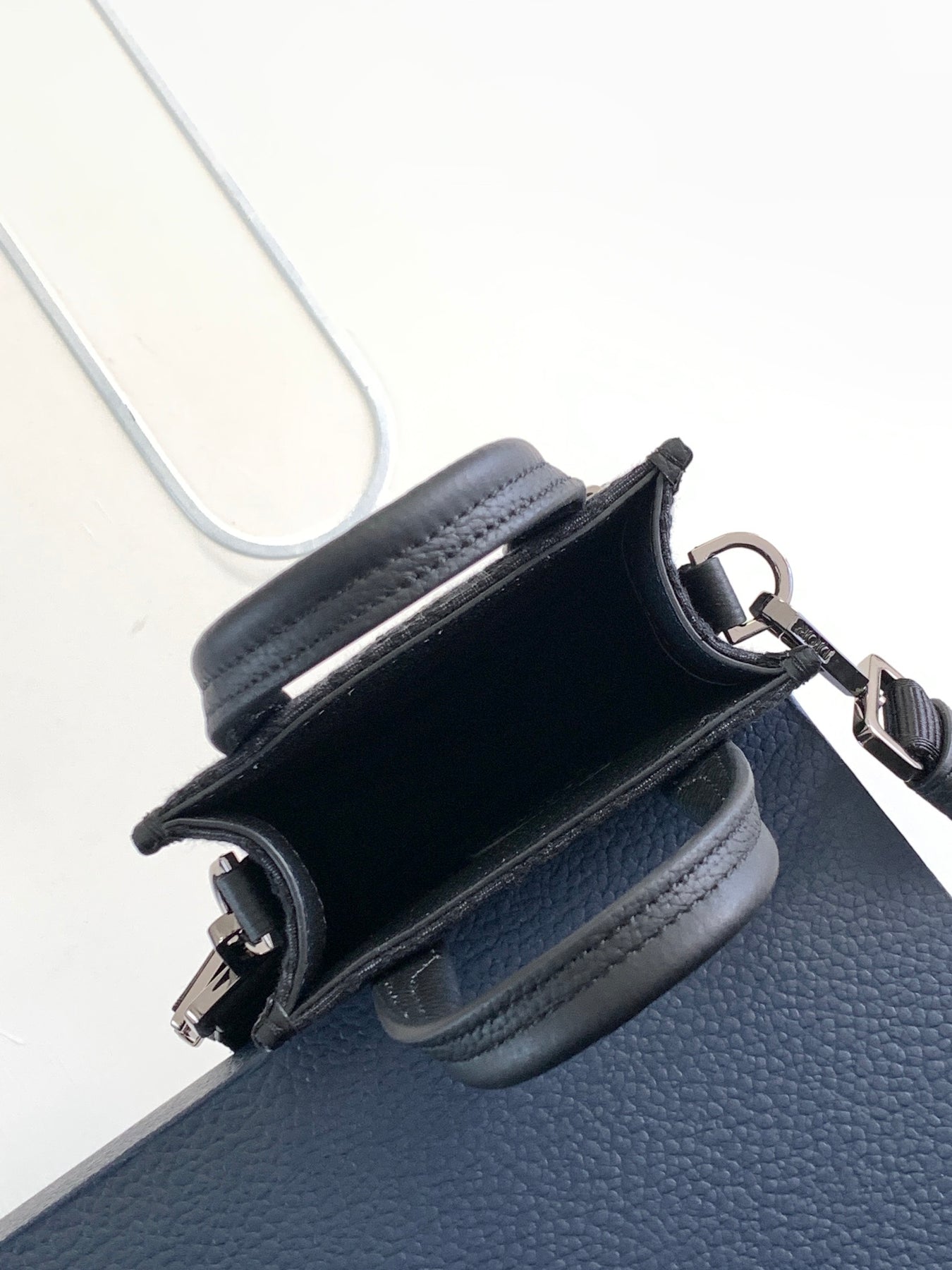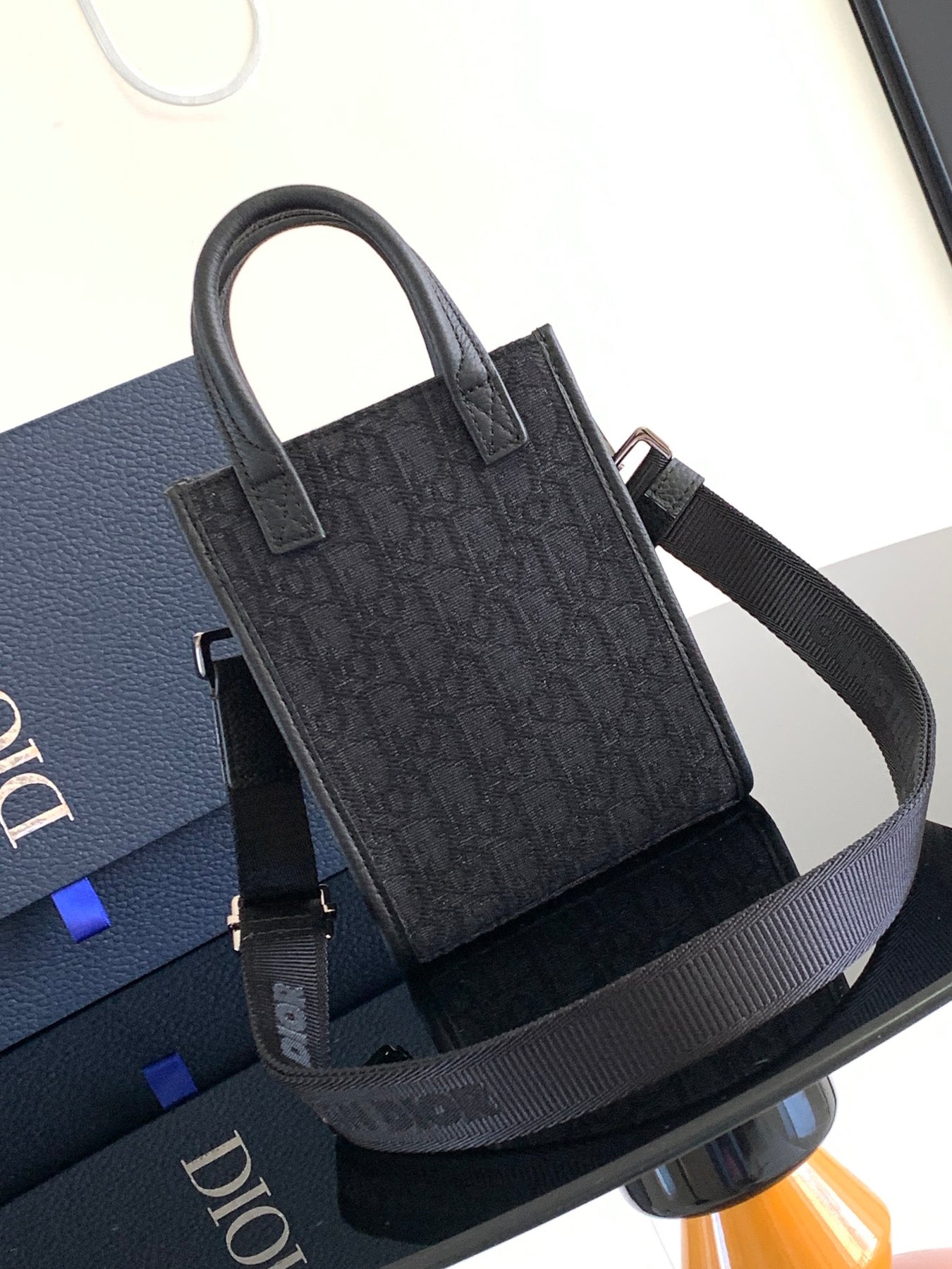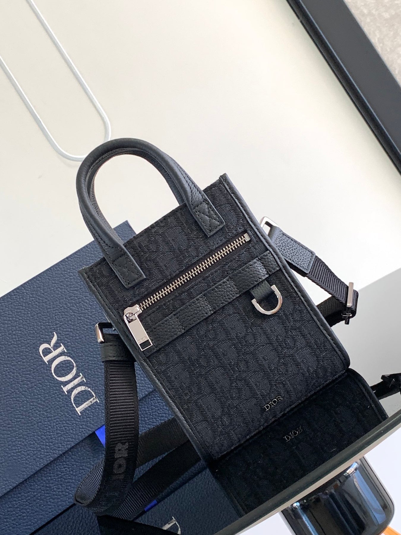 Introducing the Safari North-South Mini Handbag, a stylish and functional addition to our 2024 Spring Men's Collection. Crafted from premium black Oblique print fabric, this handbag features tonal grained cowhide leather accents for a sophisticated touch.