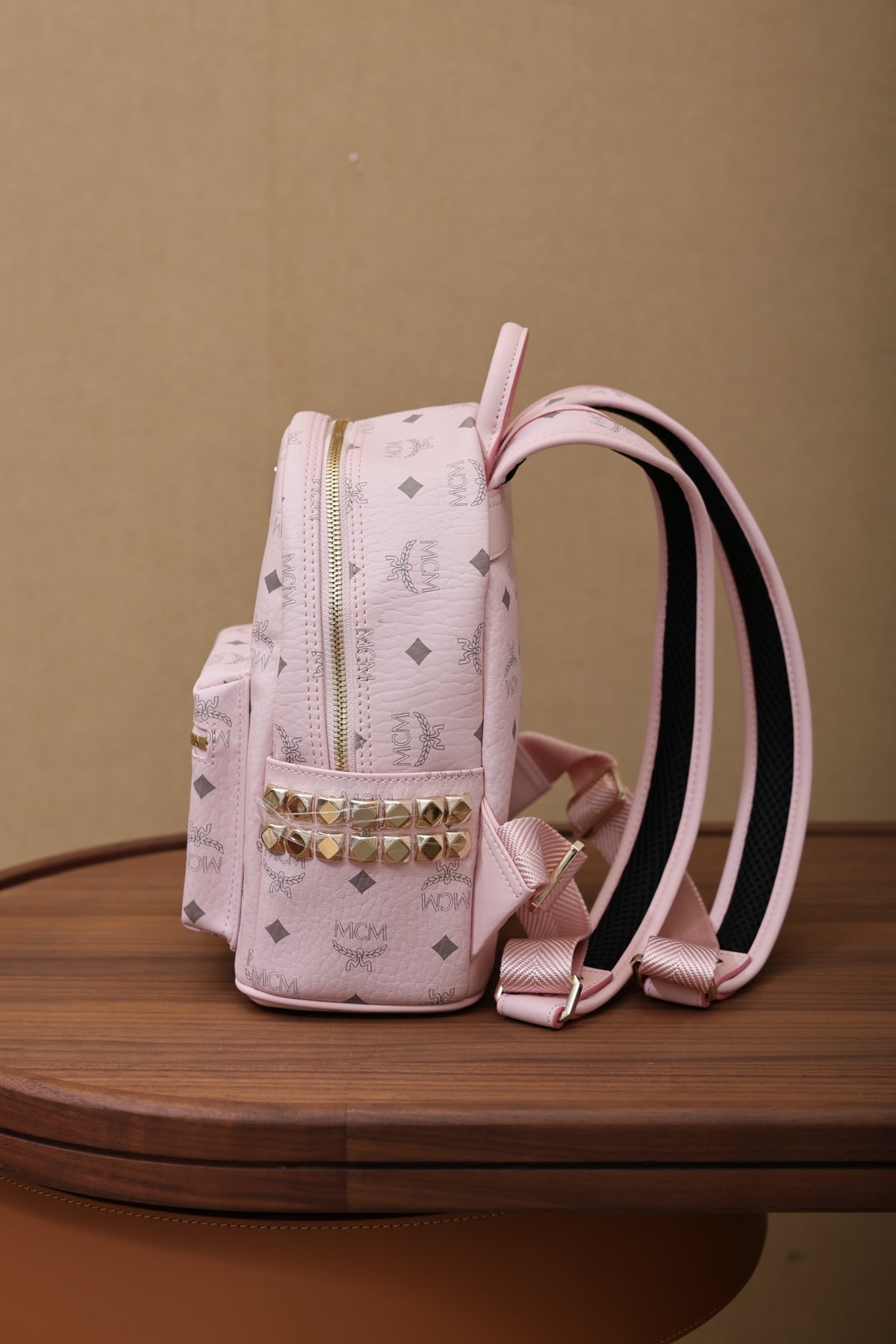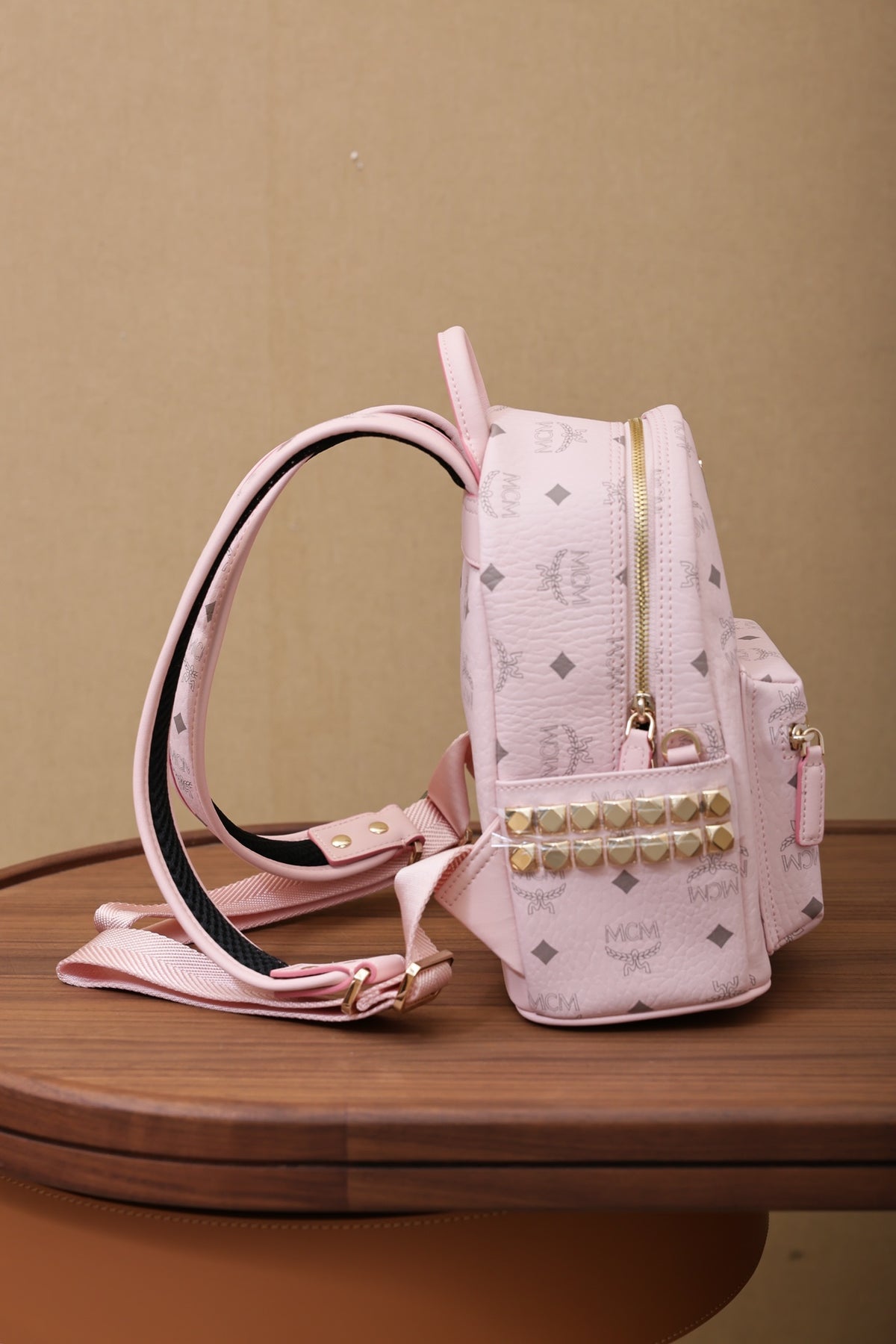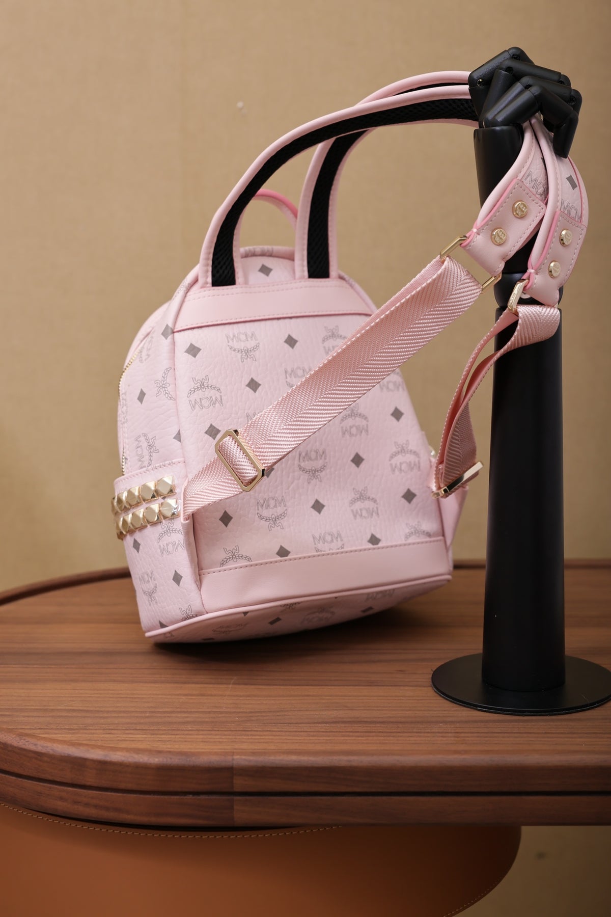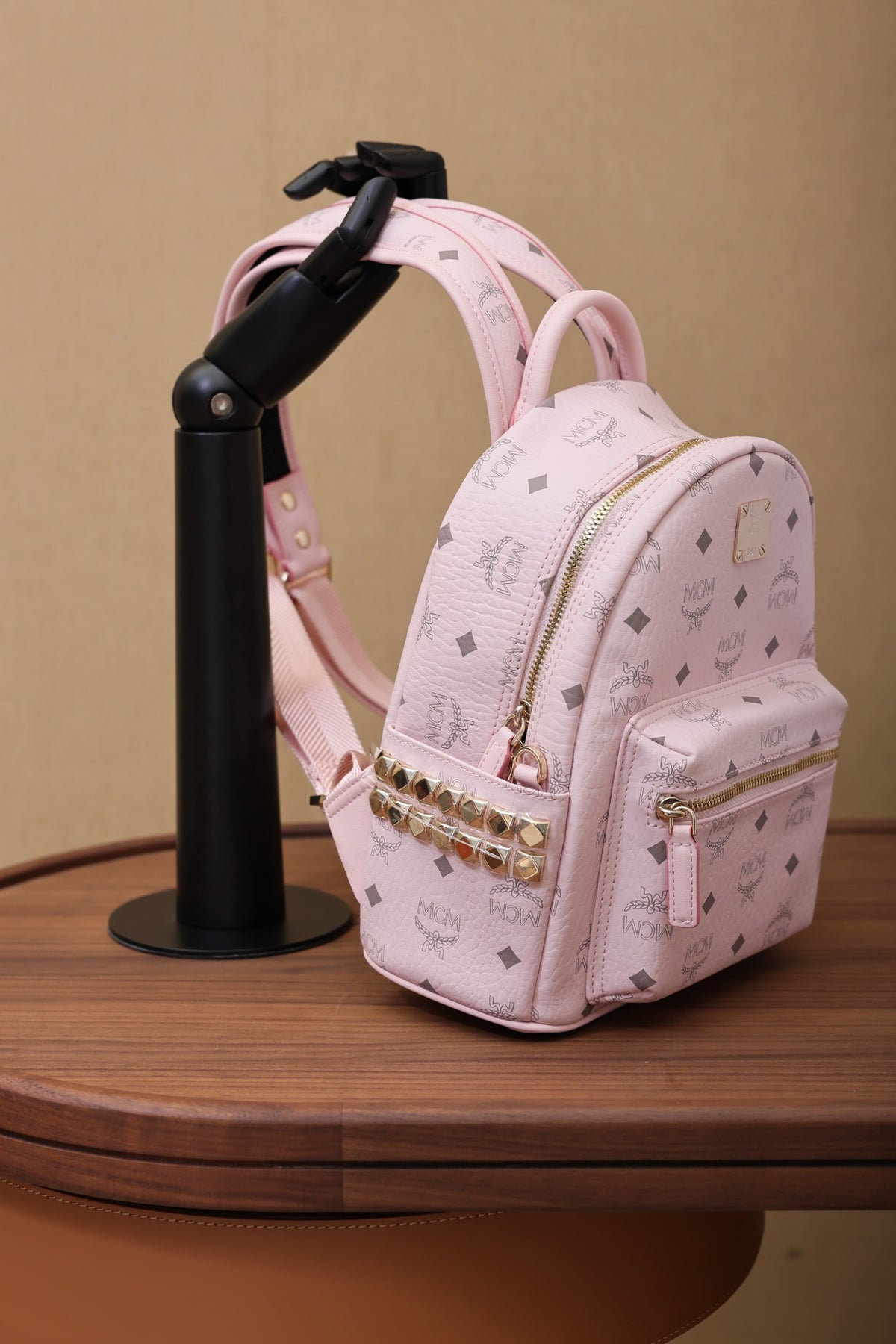 Elevate your accessory game with the Sakura Pink Mini Stark Visetos Backpack. Crafted from stylish Visetos and accented with luxurious Nappa leather, this ultra-mini backpack features striking rivet details for a modern touch.