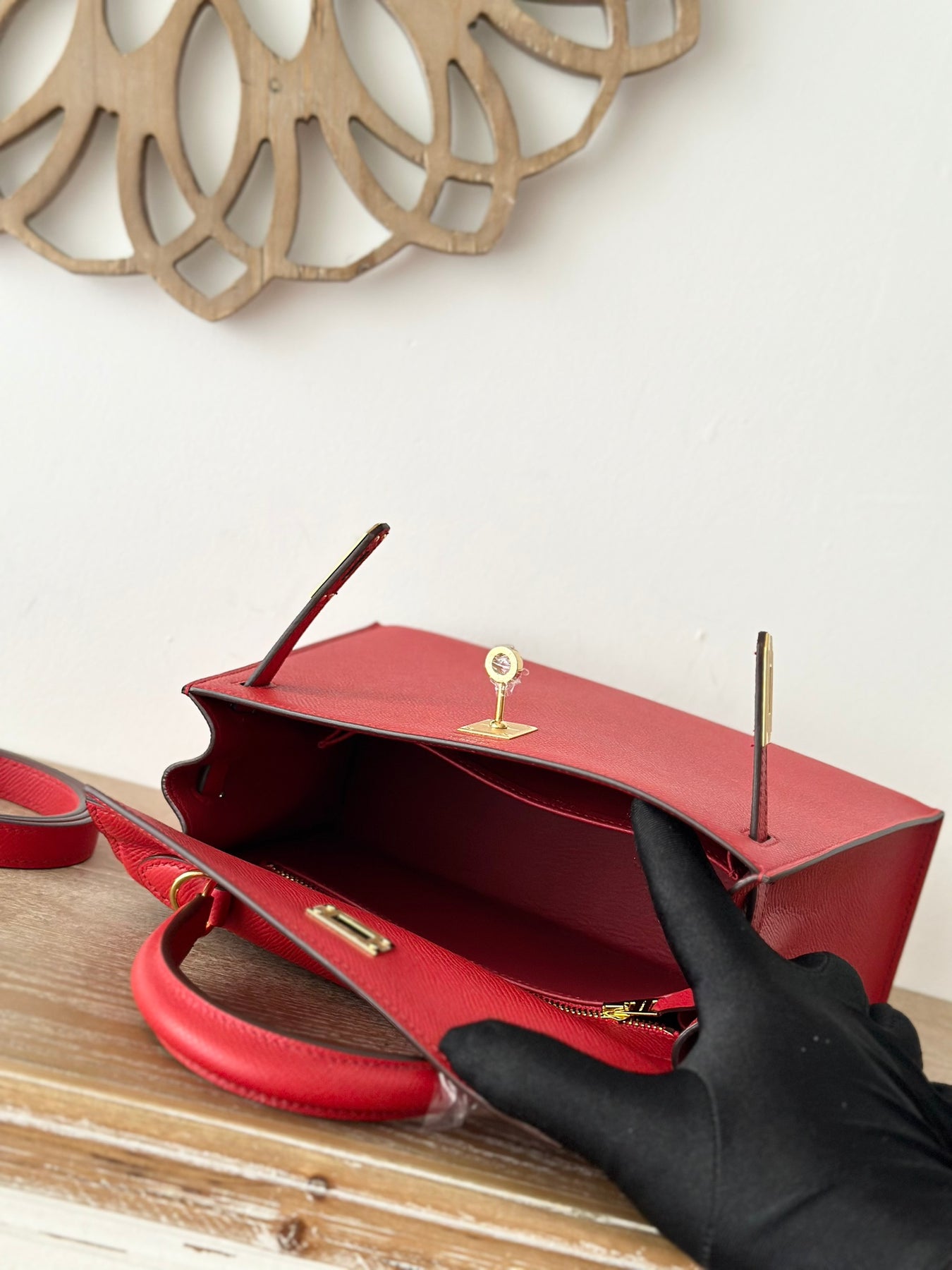 Experience quality craftsmanship with our Semi-Handmade Beeswax Thread, designed for both style and functionality. This unique product features a striking big red color complemented by a luxurious gold buckle. Measuring 25cm, it is meticulously crafted from imported Epsom original leather, ensuring durability and elegance in every use.