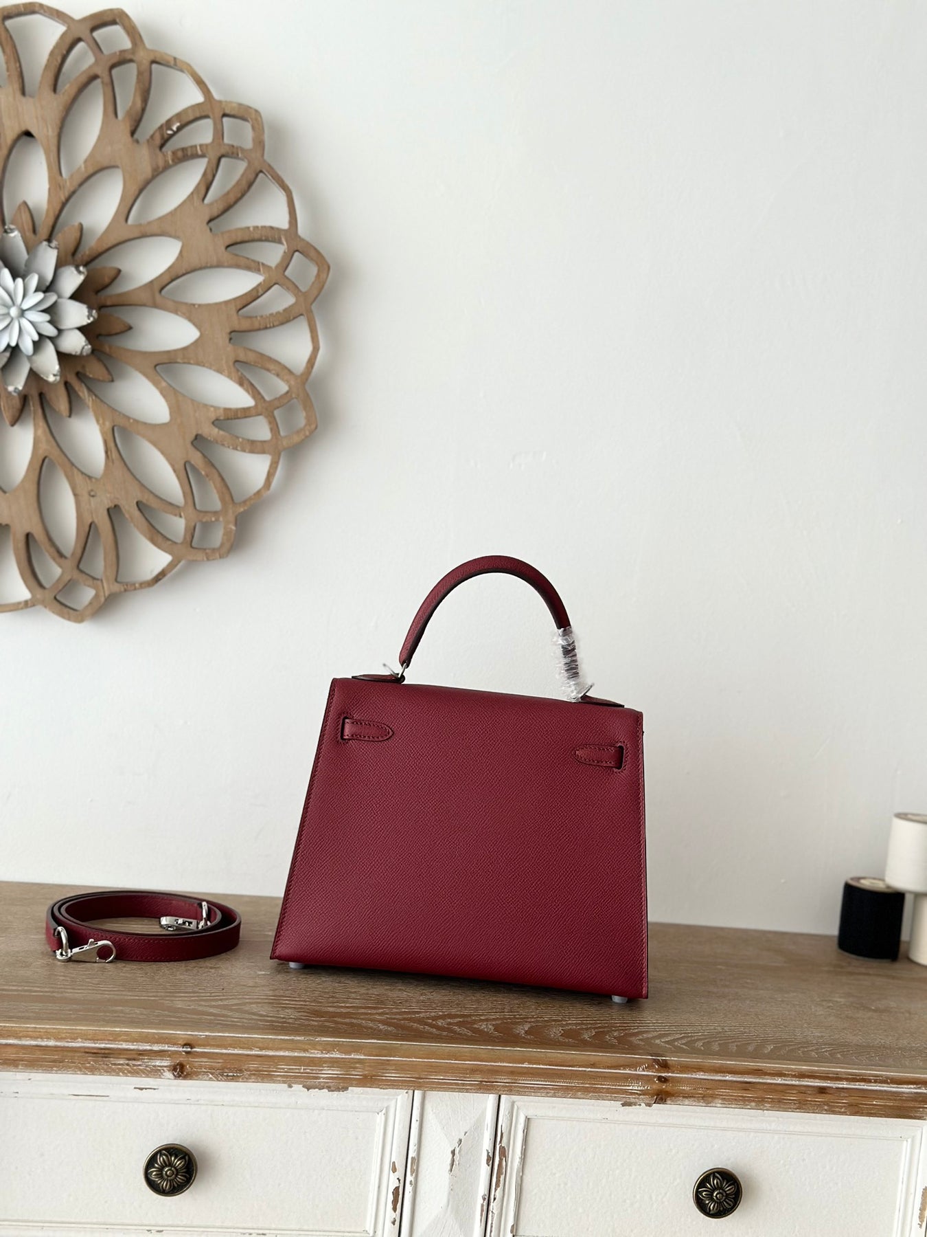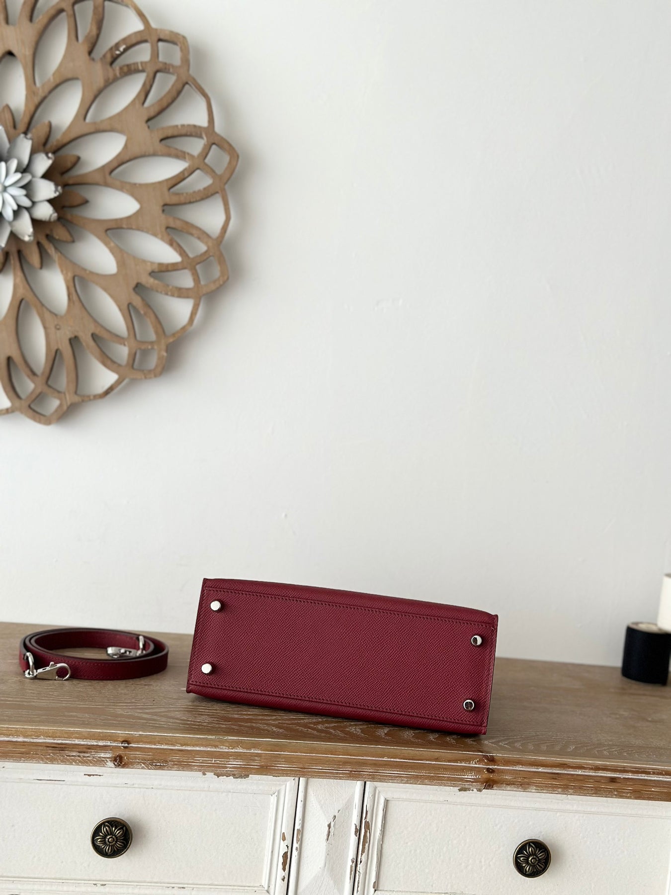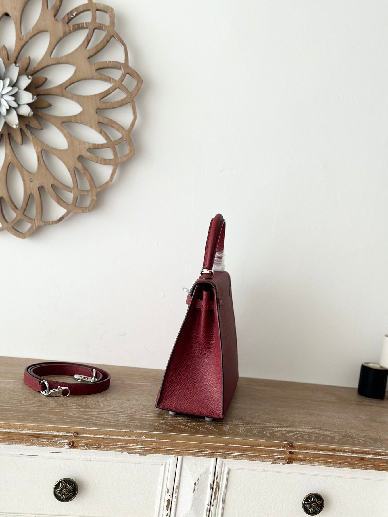 Introducing our Semi-Handmade Beeswax Thread, a perfect blend of quality and elegance. Crafted by Kelly, a trusted second-generation artisan, this 25cm thread features a rich burgundy color complemented by a sleek silver buckle. Made from premium, semi-hand-sewn beeswax thread and imported Epsom original leather, this product is designed for durability and style.