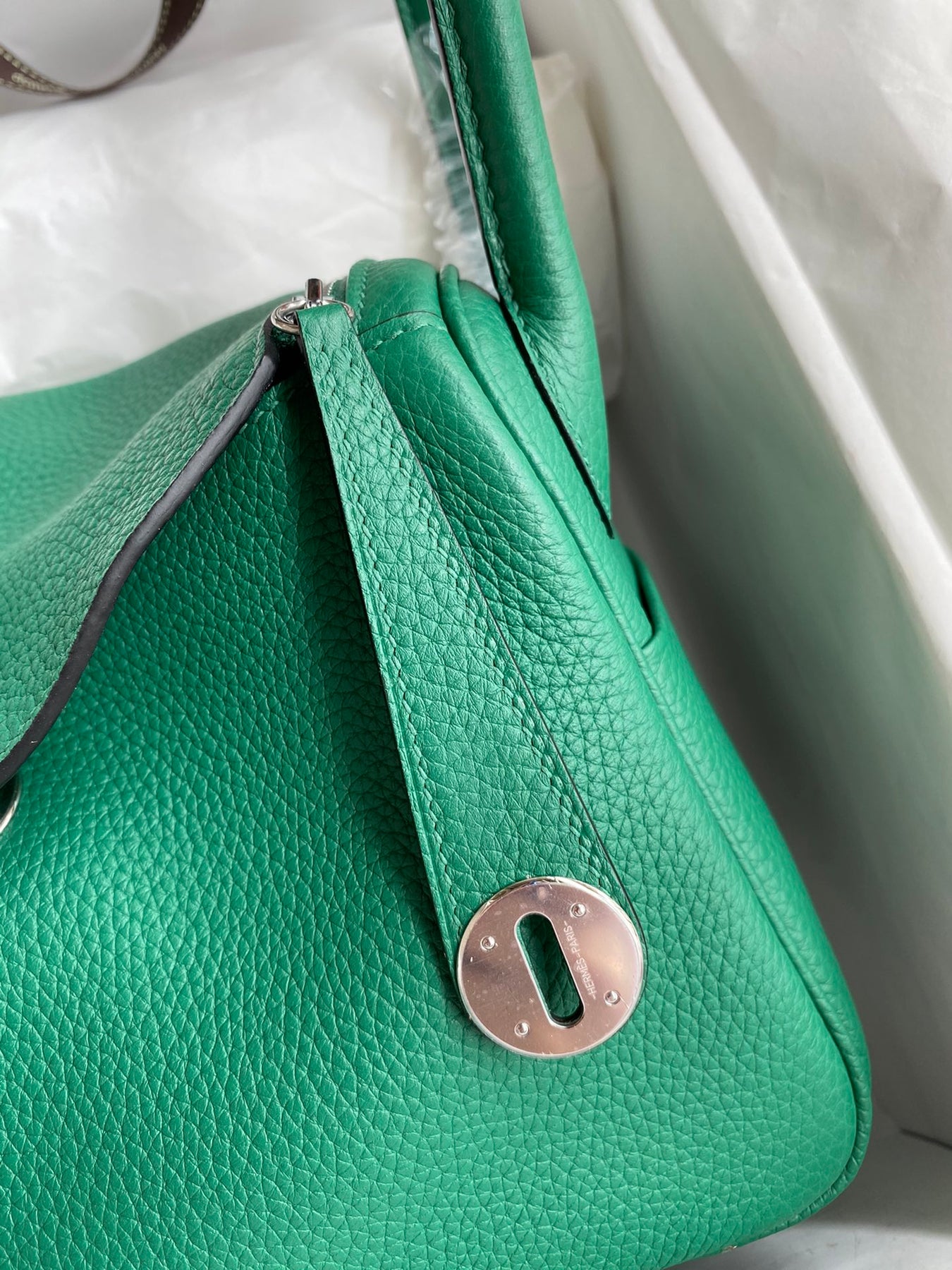 Discover the elegance of the semi-handmade Lindy bag, featuring a stunning malachite green tone. Crafted from high-quality TC leather, this compact 26cm accessory showcases a sleek silver buckle and is meticulously finished with durable wax thread. Perfect for elevating any outfit, this chic bag combines style and functionality, making it an essential addition to your wardrobe. Experience the unique charm of this exquisite piece today!