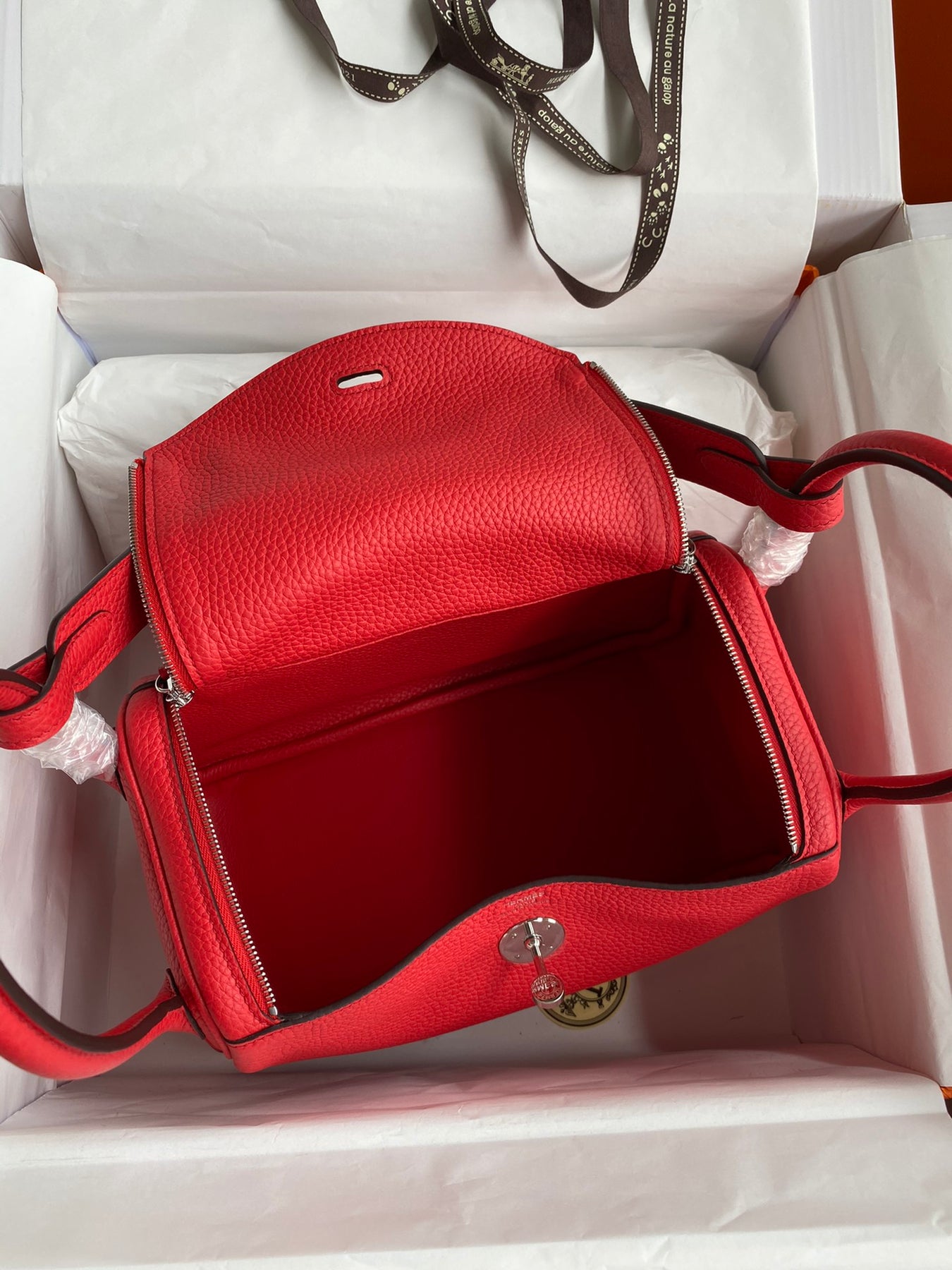 Semi-Handmade Lindy 26cm TC Leather Bag in Bright Red with Silver Buckle