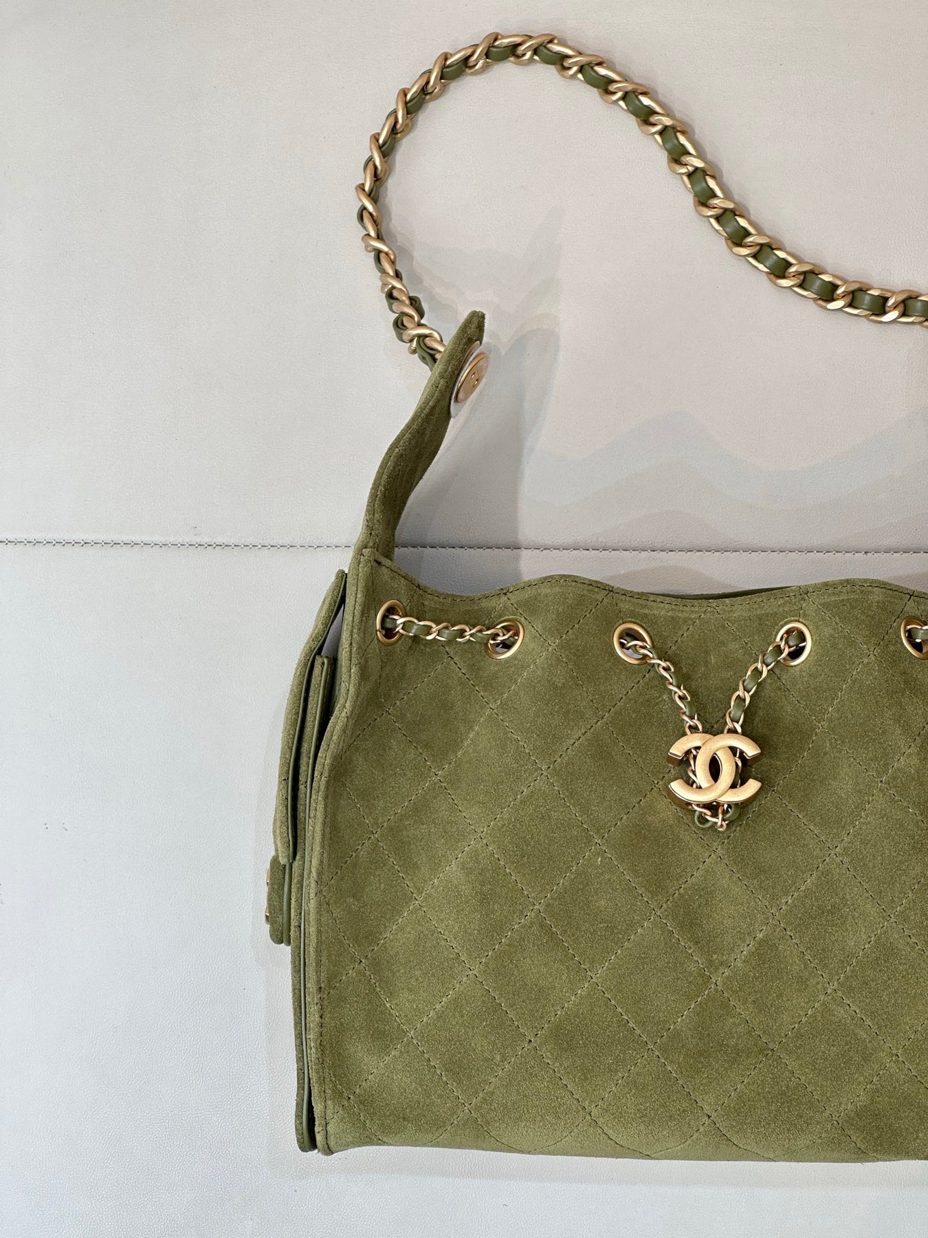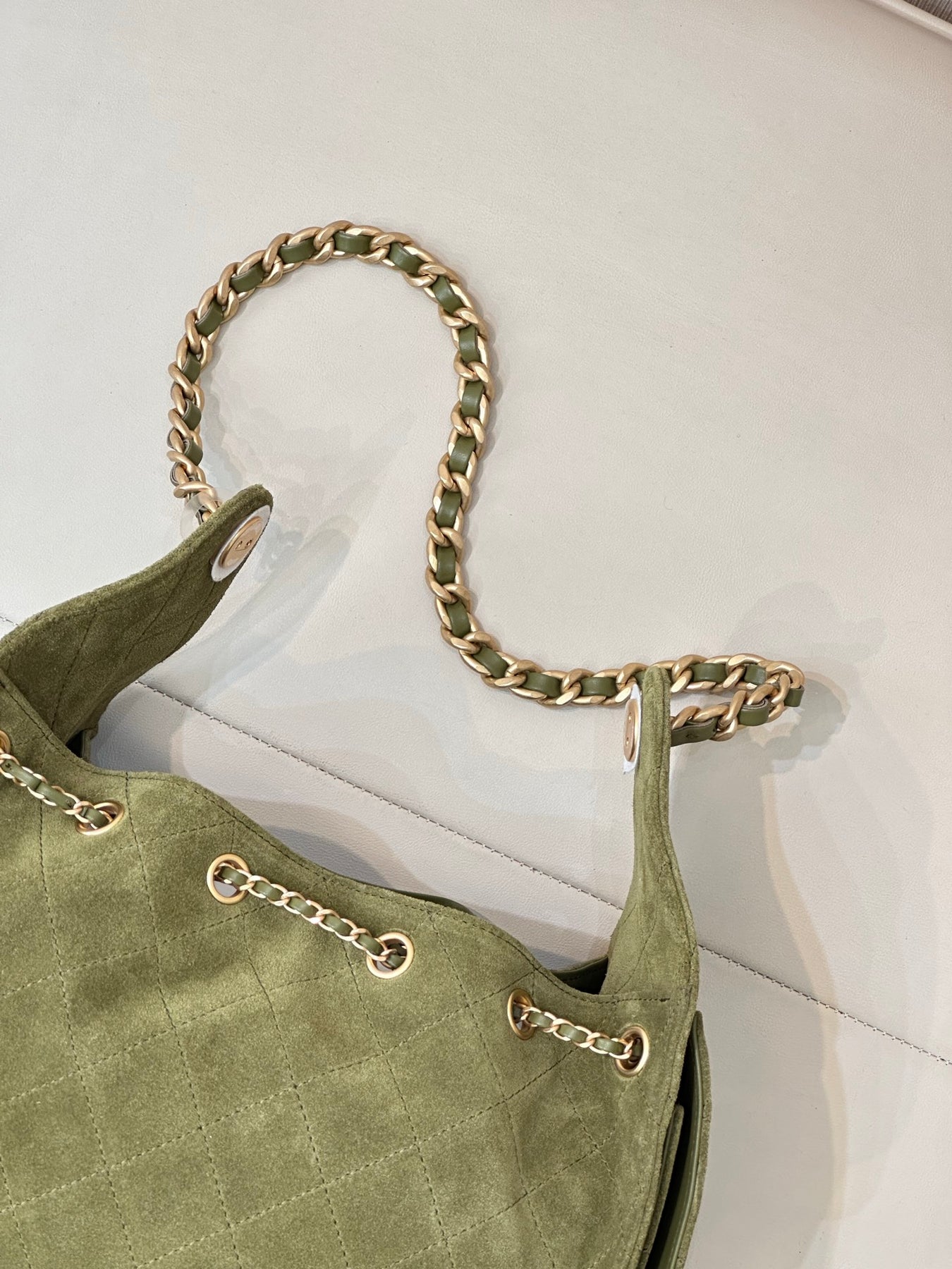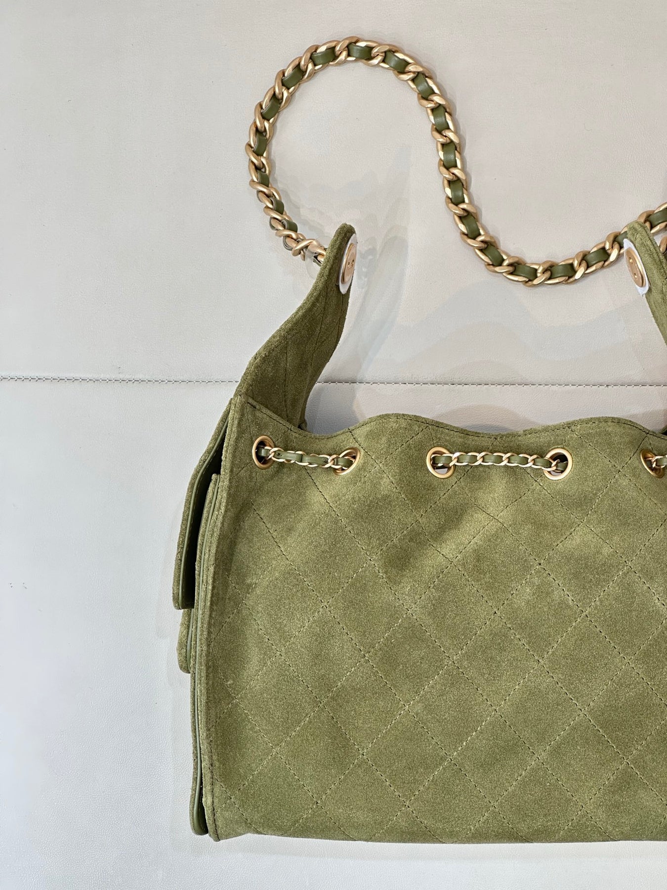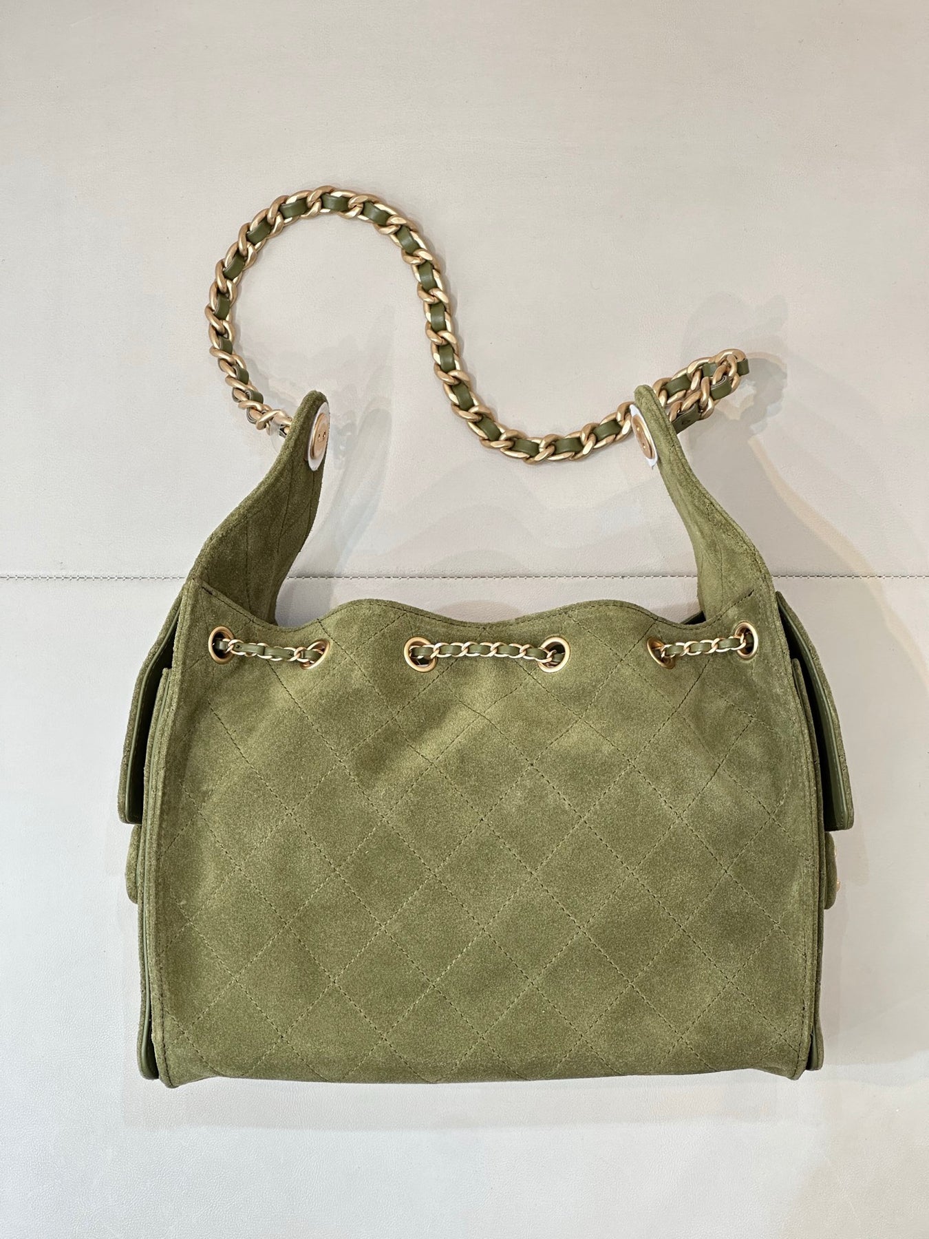 Elevate your accessory game with our Small Green Suede Bag. Crafted from high-quality suede, this chic bag is the perfect blend of style and functionality. Its vibrant green color adds a pop of personality to any outfit, while its compact size makes it an ideal companion for everyday use or special occasions. With its soft texture and durable design, this bag is not only fashionable but also built to last. Add a touch of sophistication to your wardrobe with this must-have accessory.