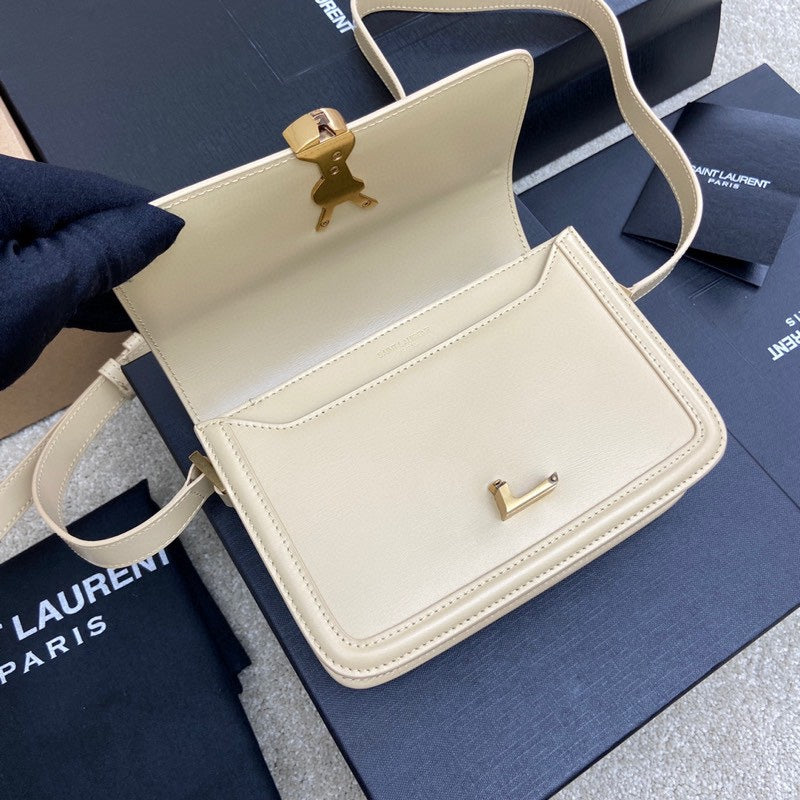 Solferino Box Leather Bag - Chic Apricot/Gold Buckle, Two Sizes Available