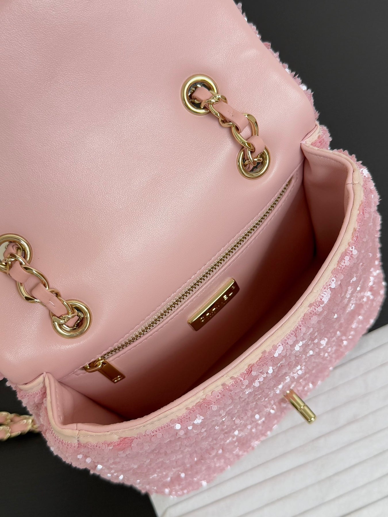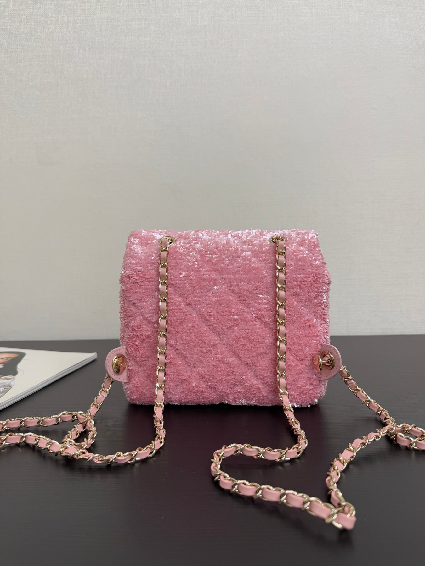 Elevate your accessory game with our 25B Sequined Square Backpack. This charming yet sophisticated bag features a classic silhouette, enhanced by playful sequin technology that sets it apart from traditional designs. The interior is lined with soft sheepskin, adding a touch of luxury to your everyday essentials. Perfectly sized at 19 x 19 x 5.5 cm, this bag is ideal for any occasion, making it a must-have for fashion-forward individuals. Add this unique piece to your collection and stand out wherever you go!