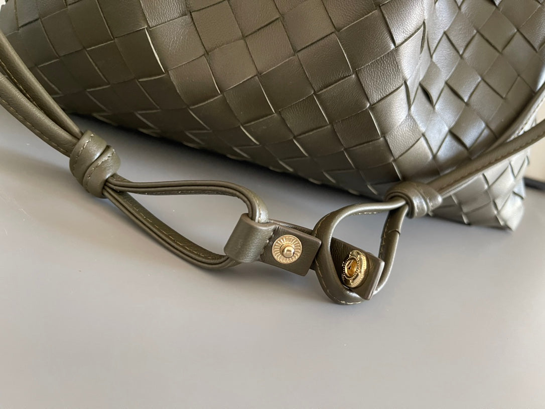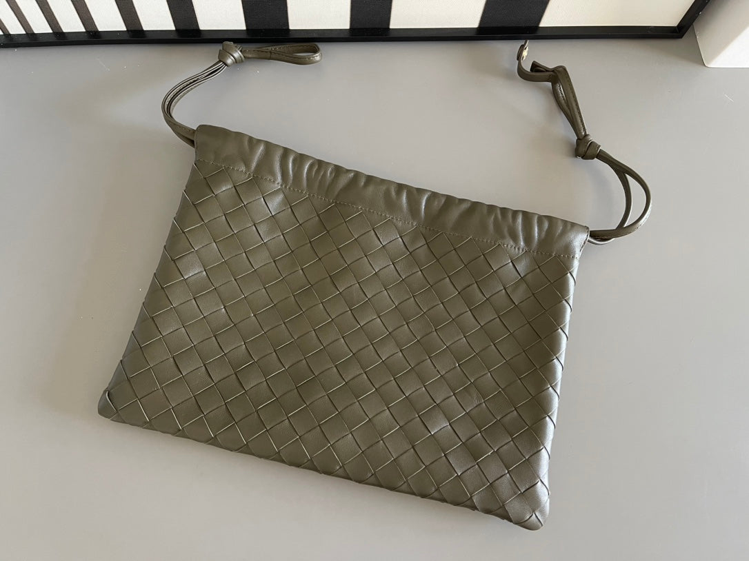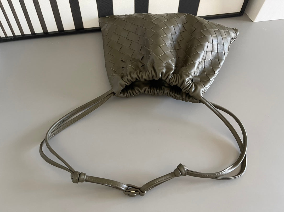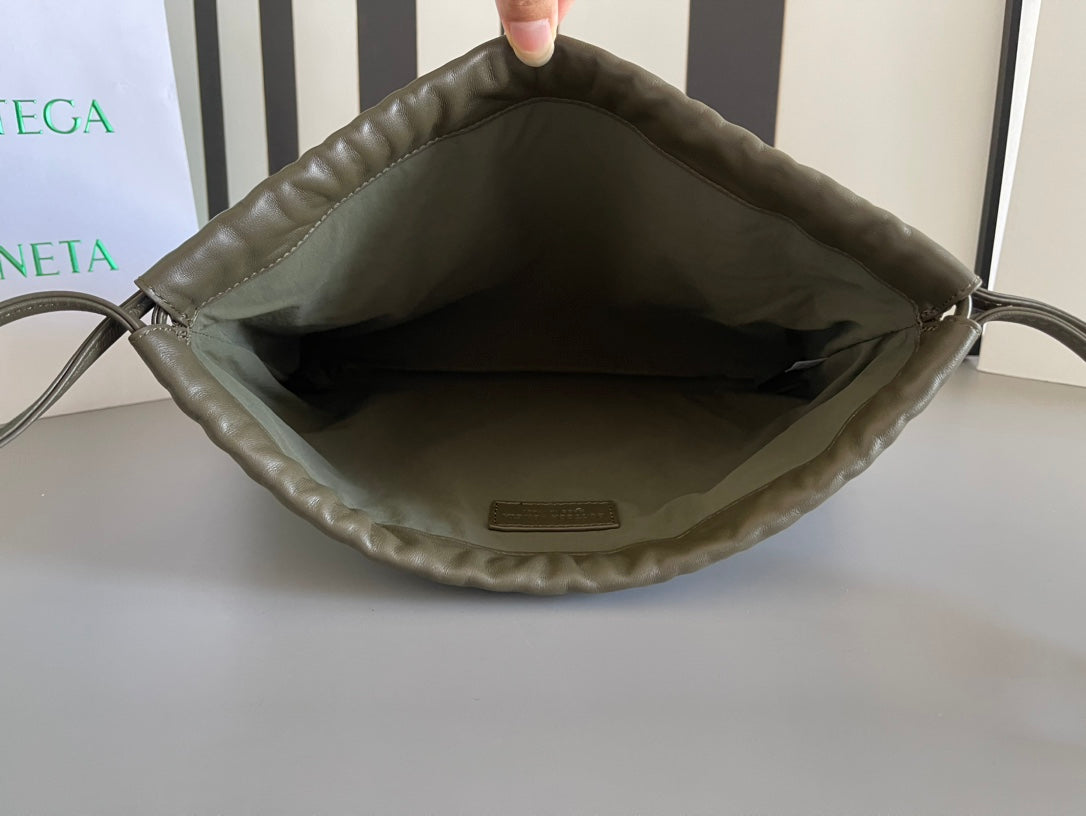 The drawstring closure features natural opening wrinkles, while the soft cowhide leather provides a smooth and luxurious feel. Designed for both style and practicality, it's lightweight yet spacious enough to fit all your essentials.