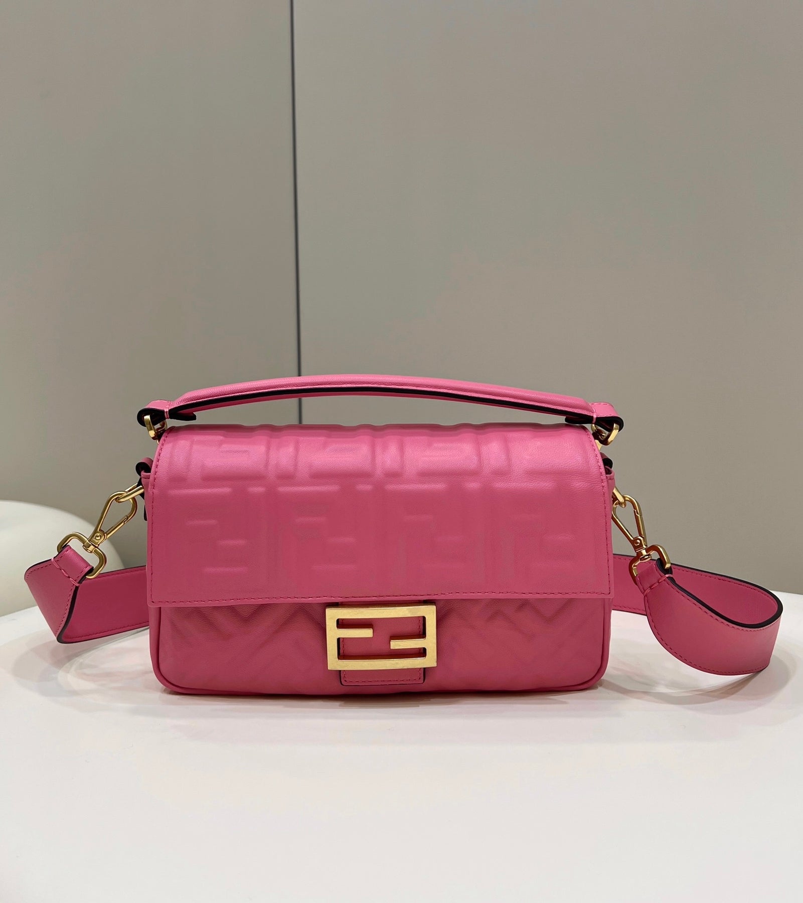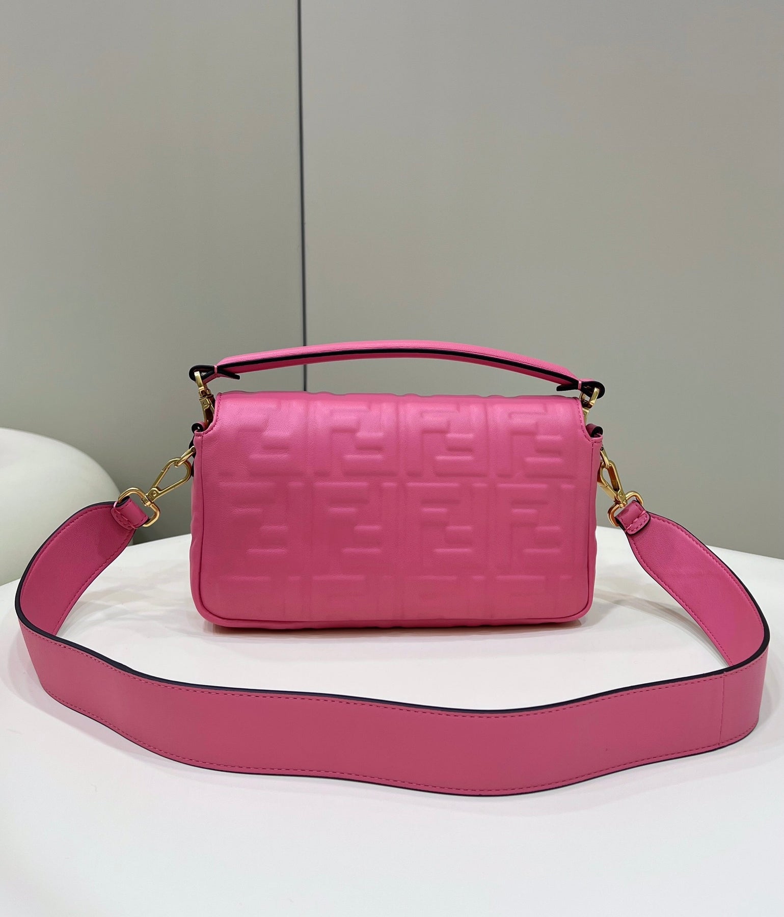 Elevate your accessory game with our 0191L Pink Flip Cross-Body Handbag. Crafted from luxurious sheepskin, this bag features an eye-catching embossed all-over F design. It boasts a spacious interior with a secure zipper pocket for essentials, ensuring both style and functionality. The handbag comes with detachable leather shoulder straps in both long and short lengths, providing versatility for any occasion. Measuring 26.5 cm x 15 cm, it's the perfect companion for day or night. Complete with full packaging and invoice for your convenience.