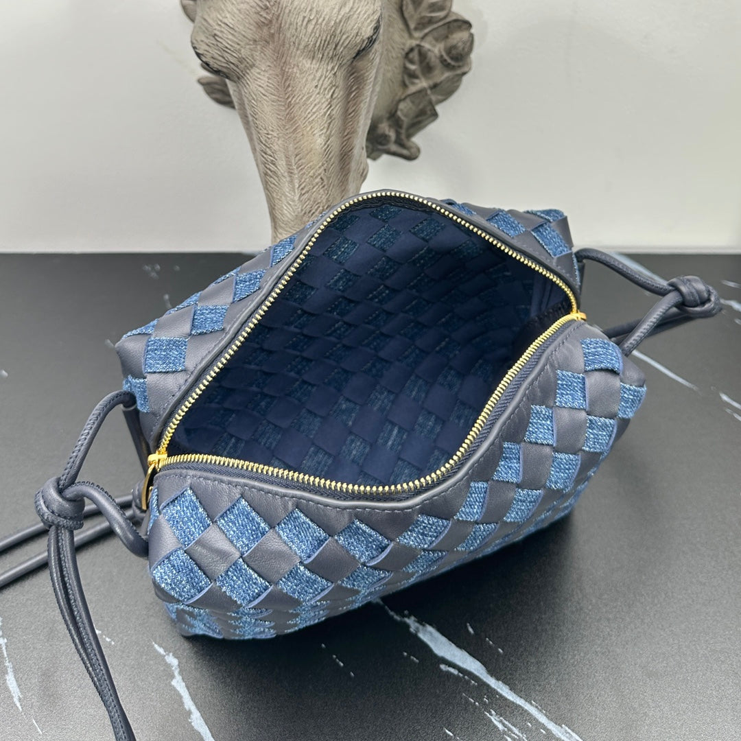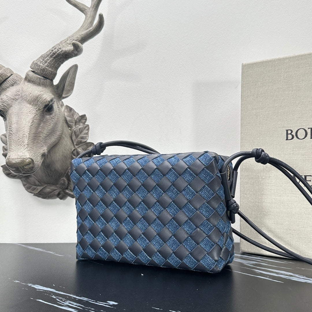Crafted from high-quality denim and leather, this bag retains its original charm, enhanced by a stylish knitted grid pattern that keeps it looking fresh and contemporary. Ideal for all ages, the loop woven small square bag is a versatile accessory that effortlessly complements any outfit.