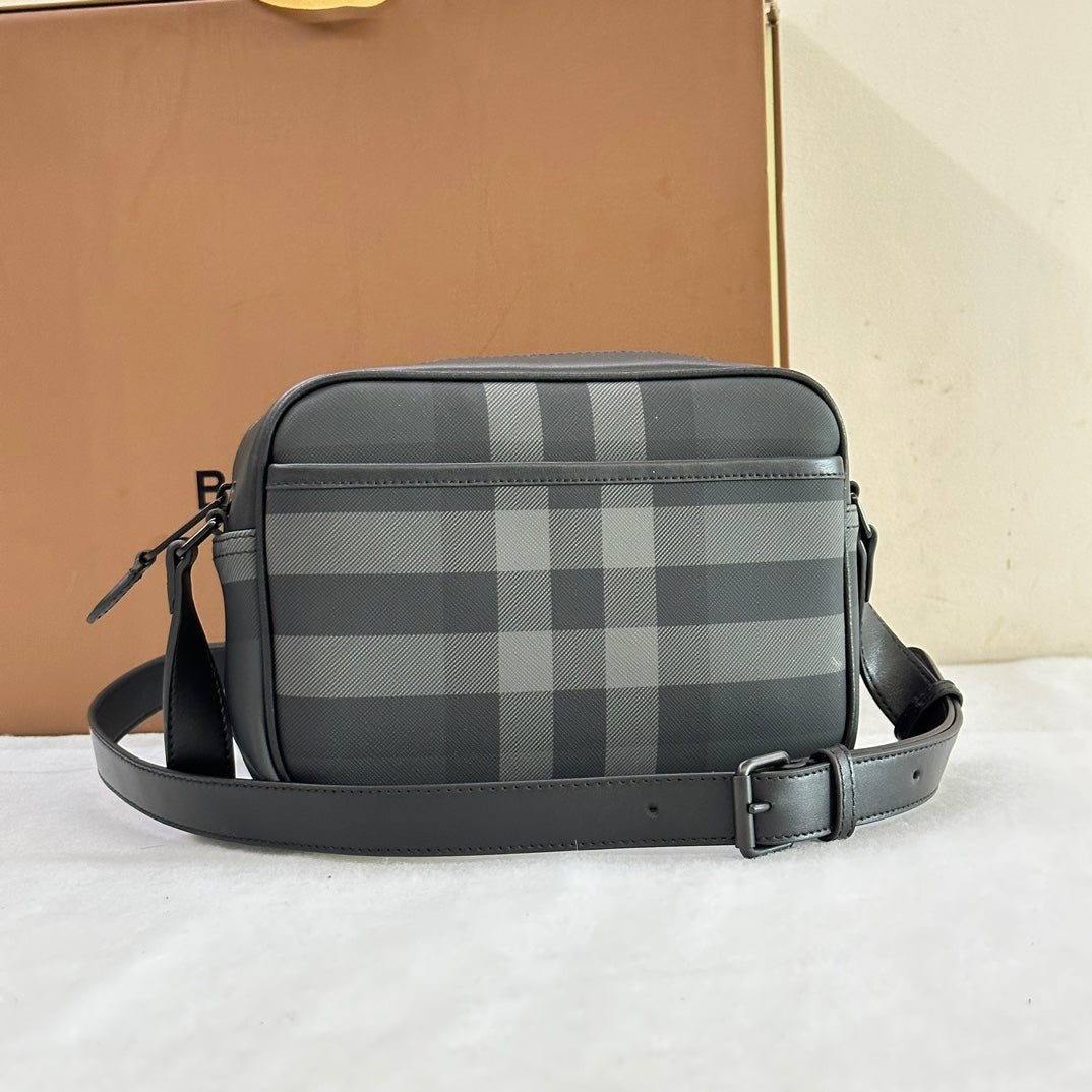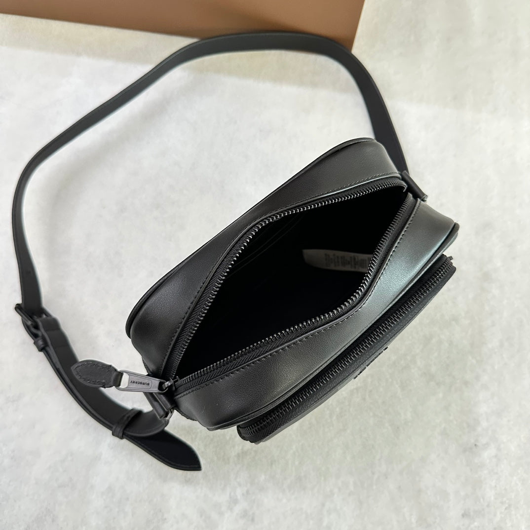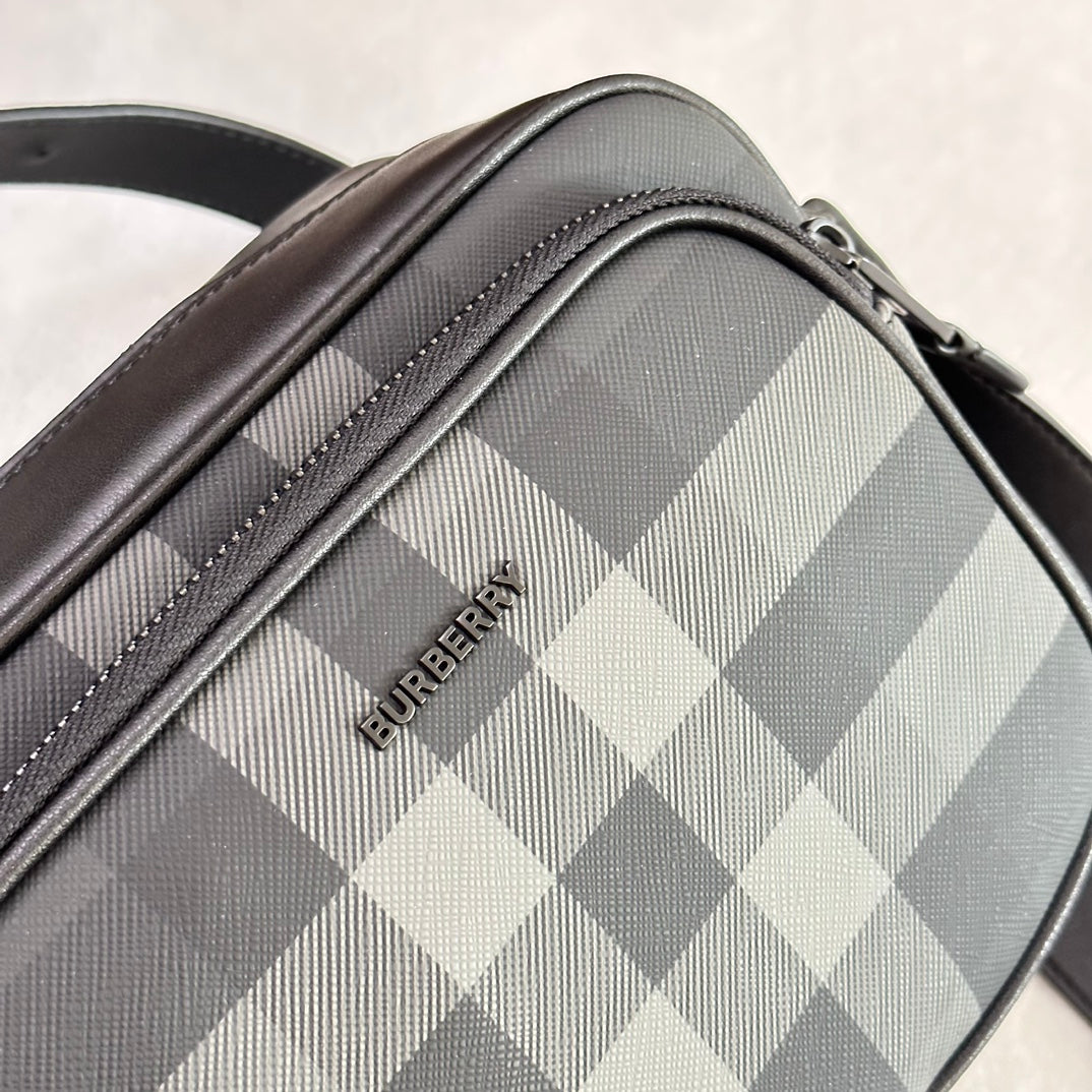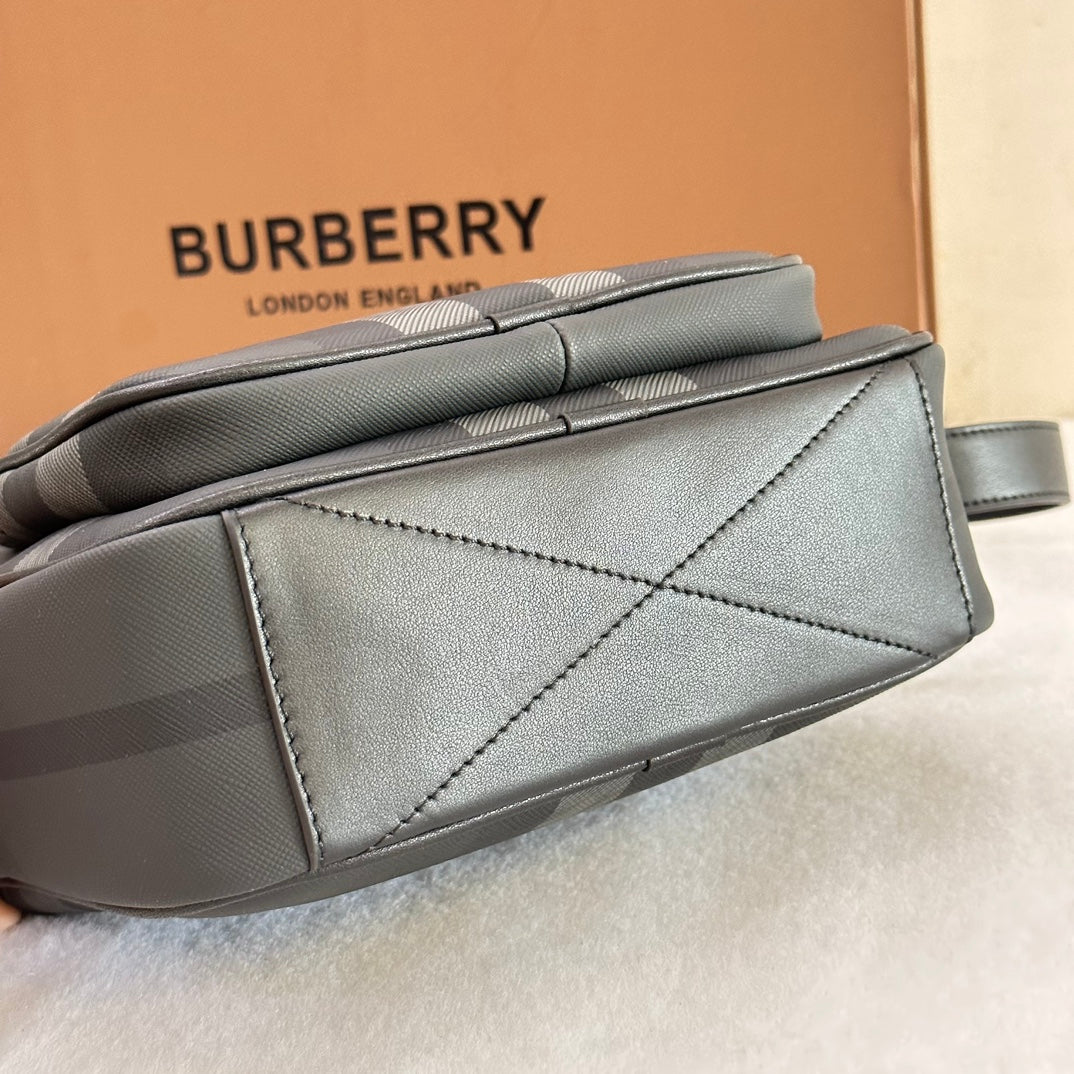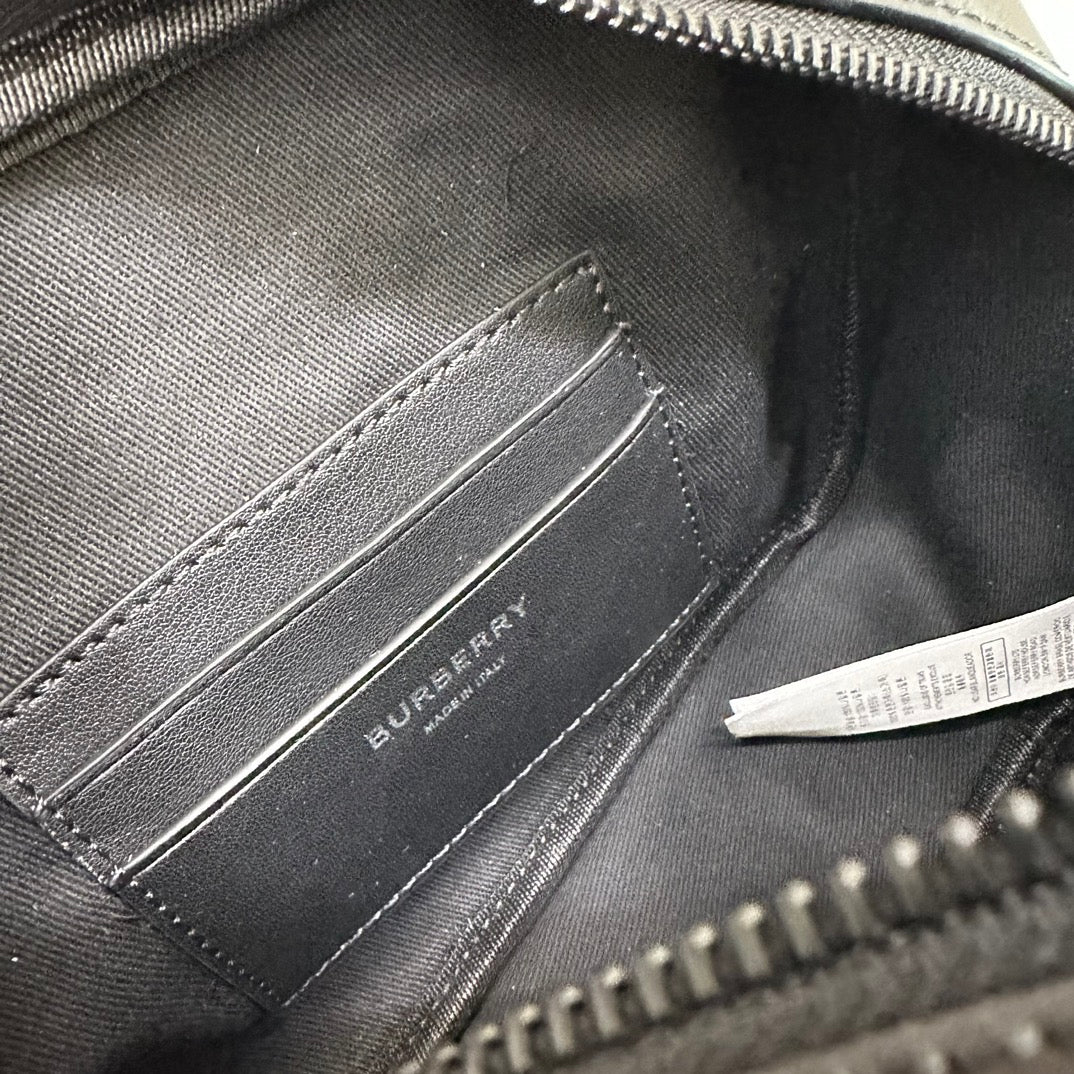 The bag is finished with a zip fly, hand-painted lacquered edges, and glossy metal hardware, ensuring a polished look. The 3D Burberry lettering logo on the front adds a stylish touch to this versatile piece. Perfect for any occasion, this bag combines luxury and functionality in one stunning design.