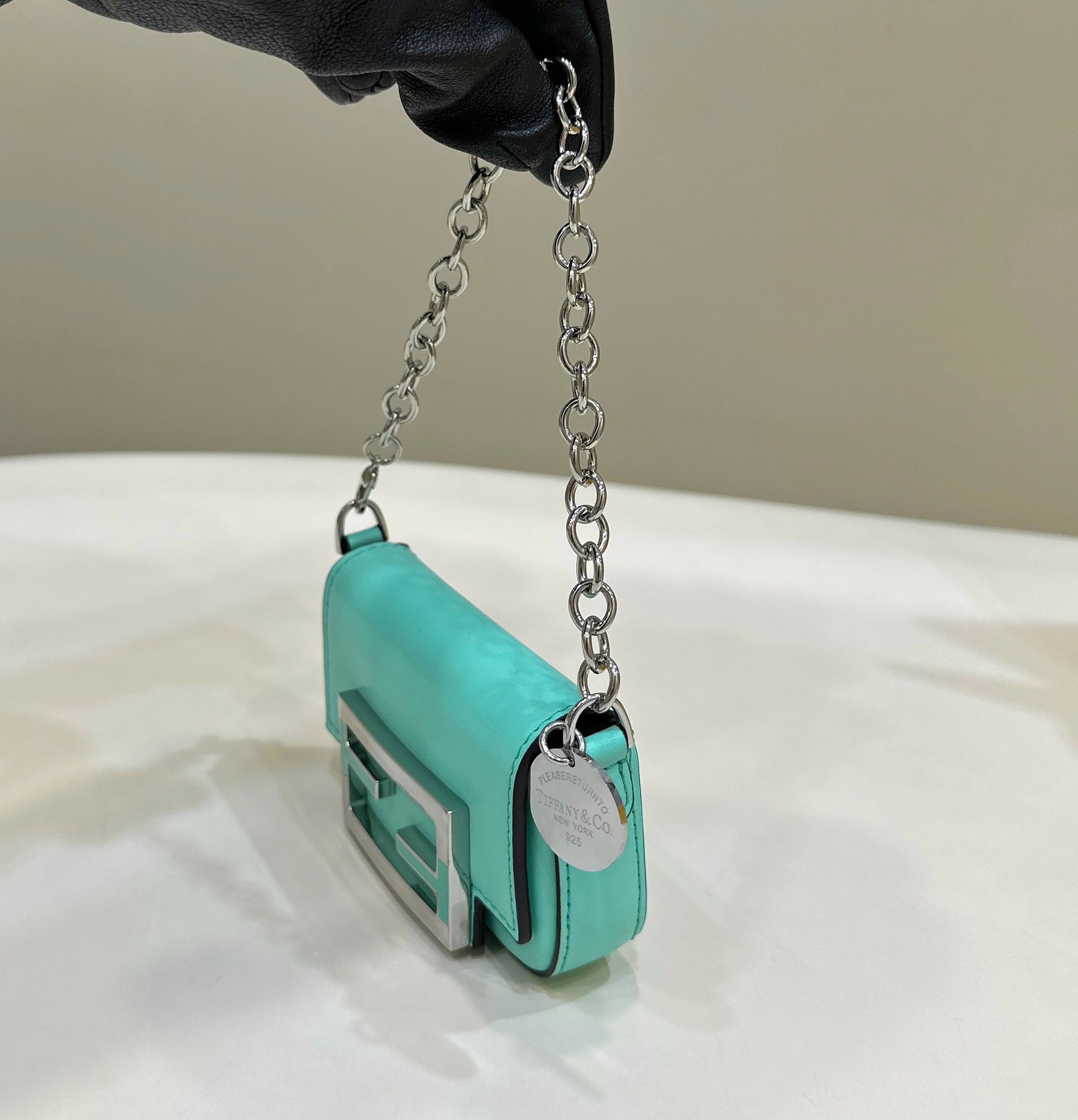 Tiffany Blue Mini Baguette Bag - Leather & Chain Strap