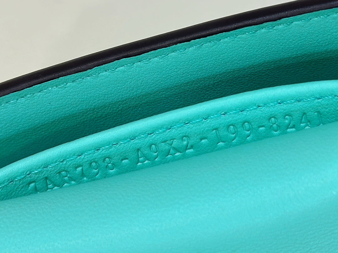 Elevate your accessory collection with our Tiffany Blue Mini Baguette Bag. This stunning piece boasts a captivating hue that exudes sophistication and charm. Crafted entirely from premium leather, it perfectly embodies modern elegance while showcasing miniaturized cuteness. The bag features stylish short chain shoulder straps for added flair and versatility.