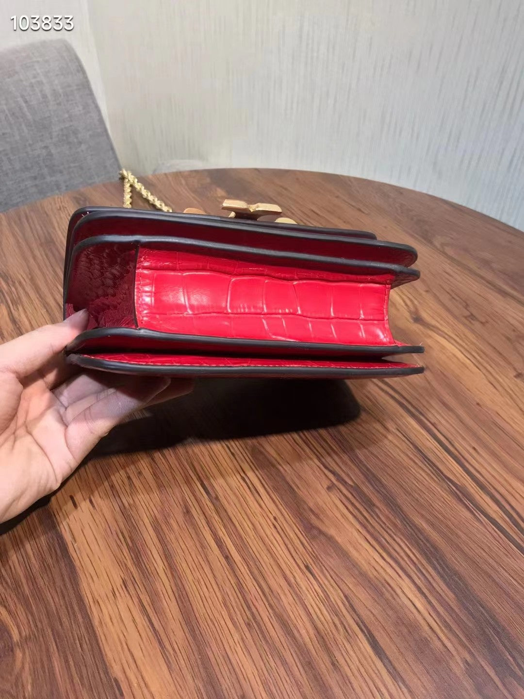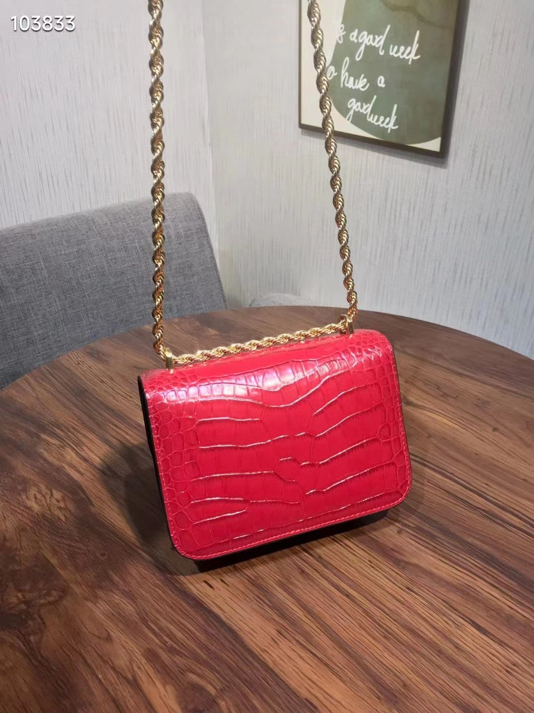 Discover the elegance of the TORY BURCH ELEANOR Accordion Bag, featuring a striking large crocodile pattern crafted from premium first-layer cowhide. This stylish bag is designed for versatility with its dual-purpose shoulder strap, allowing you to carry it as a crossbody or shoulder bag. It includes a secure zipper pocket and an internal slip pocket for organized storage. Dimensions: 18.5 x 11 inches, making it the perfect accessory for both everyday outings and special occasions. Elevate your style with this luxurious and functional piece.