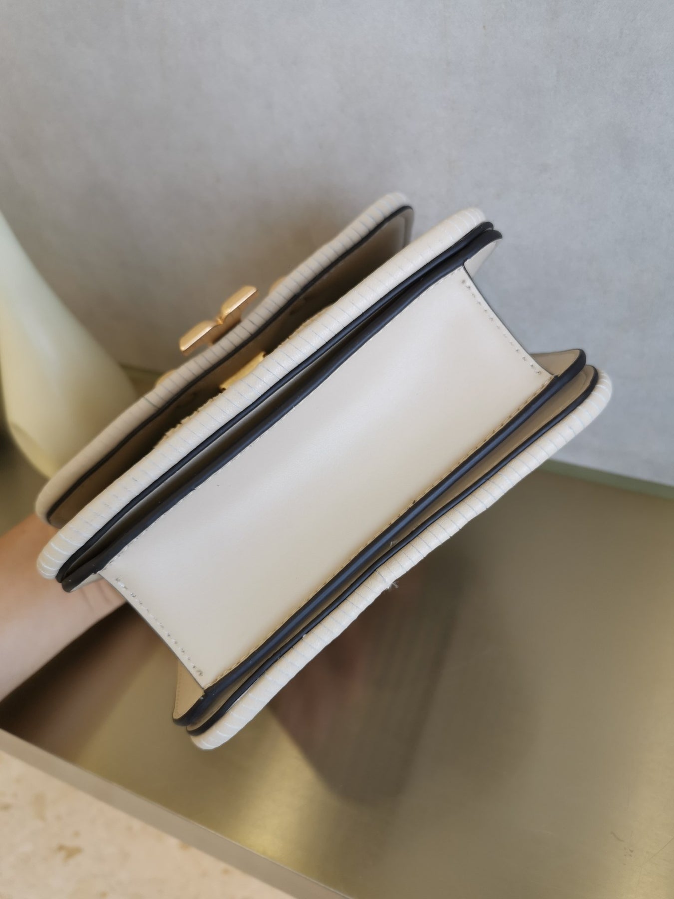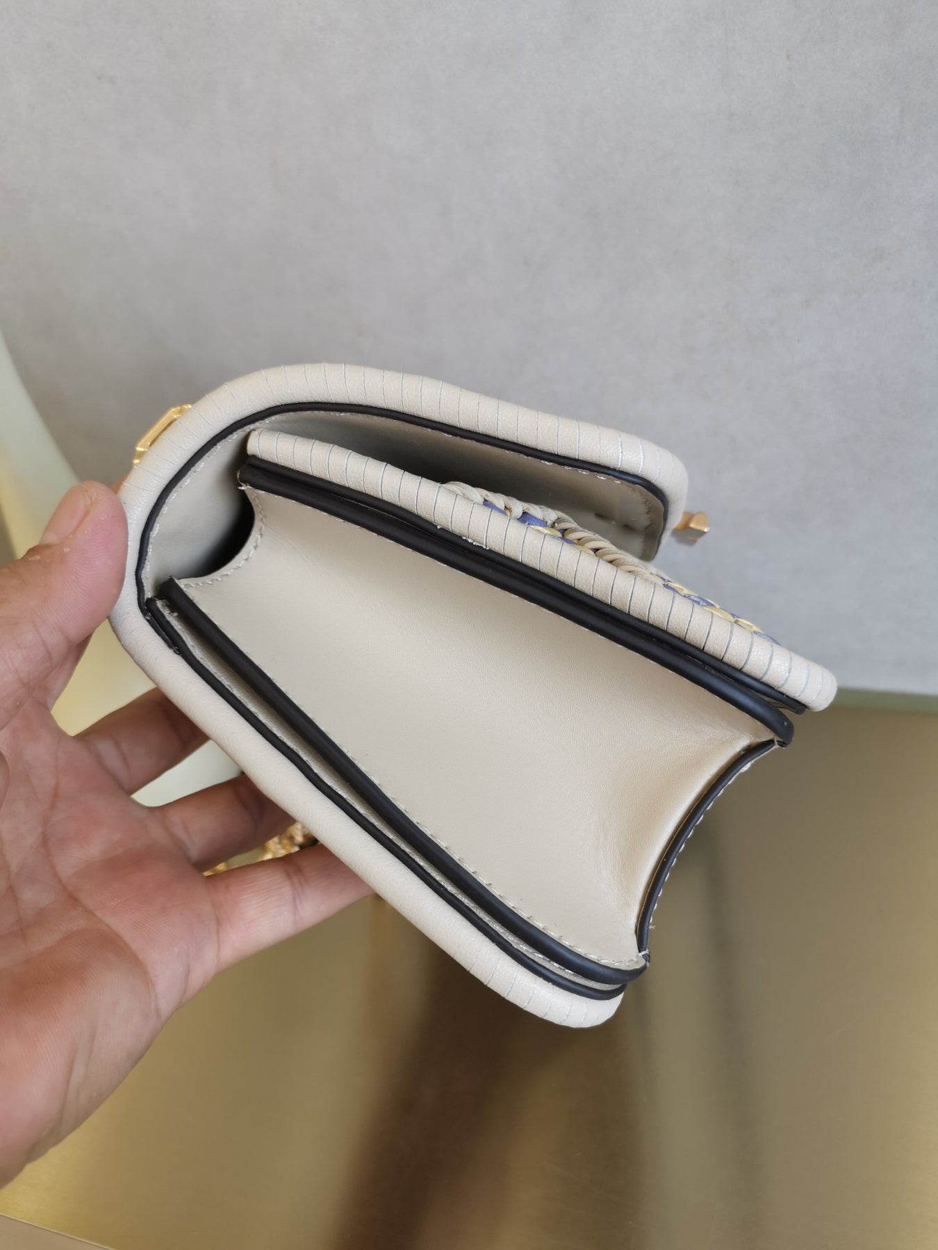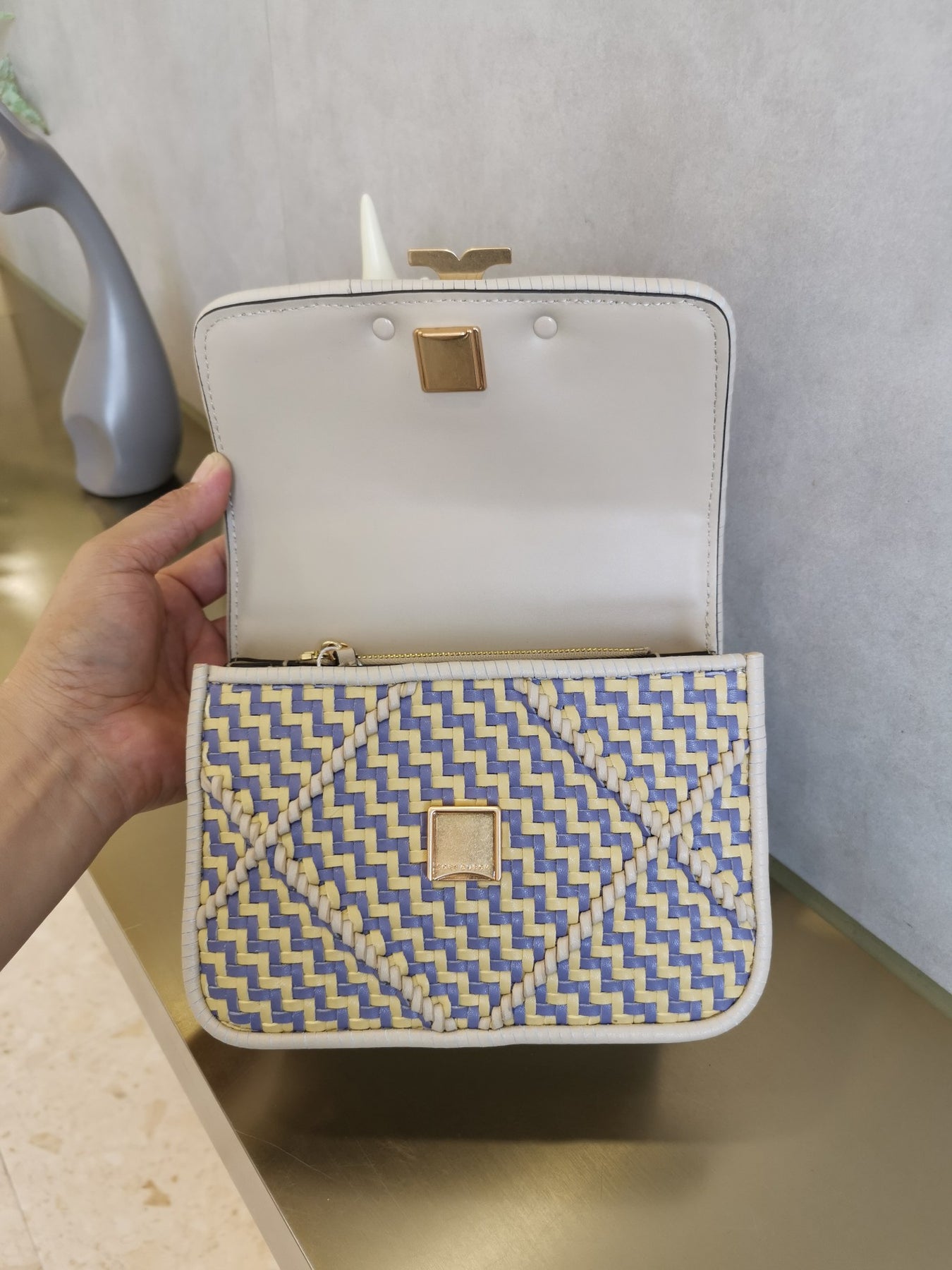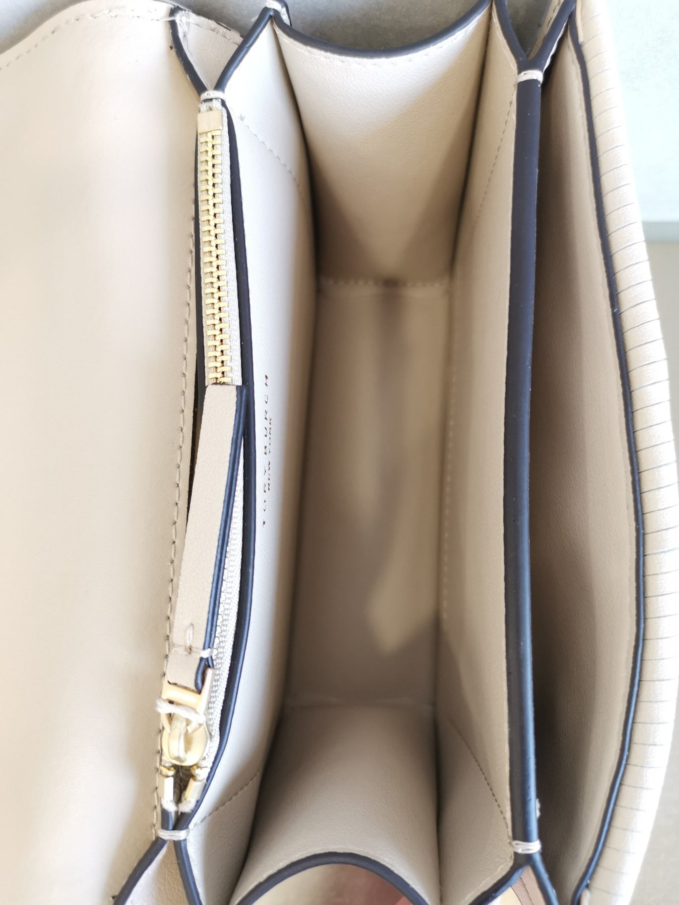 Elevate your accessory collection with the Tory Burch Eleanor Accordion Bag, meticulously crafted from luxurious Napa cowhide. This stylish bag features a chic woven design, complemented by a durable hardware chain for added elegance. With dimensions of 19 x 13.5 x 6.5 inches, it offers ample space while maintaining a compact silhouette. Inside, you'll find a convenient zipper pocket and an internal slip pocket for organization, making it perfect for both everyday use and special occasions. Discover the perfect blend of fashion and function with the Tory Burch Eleanor bag.