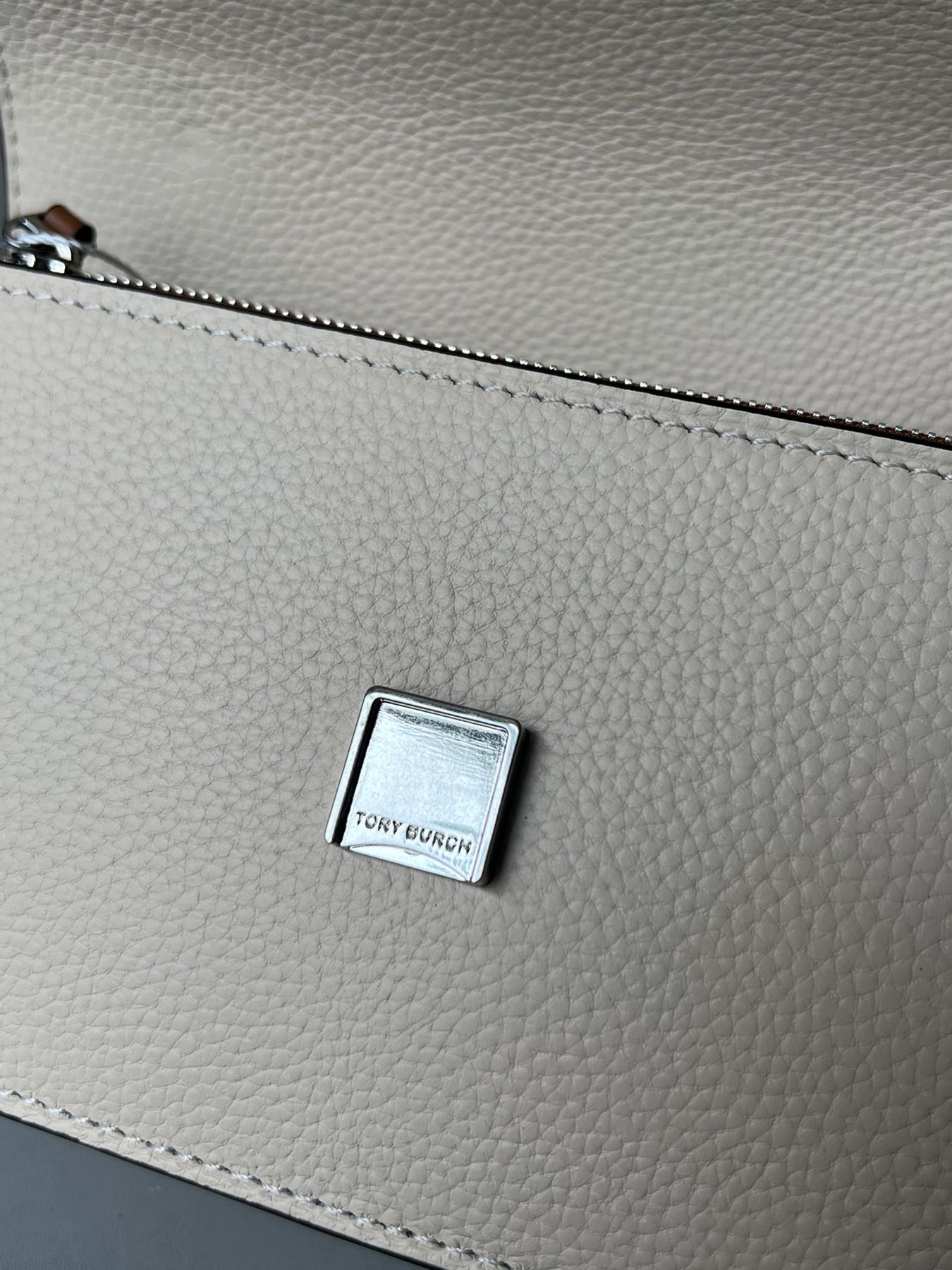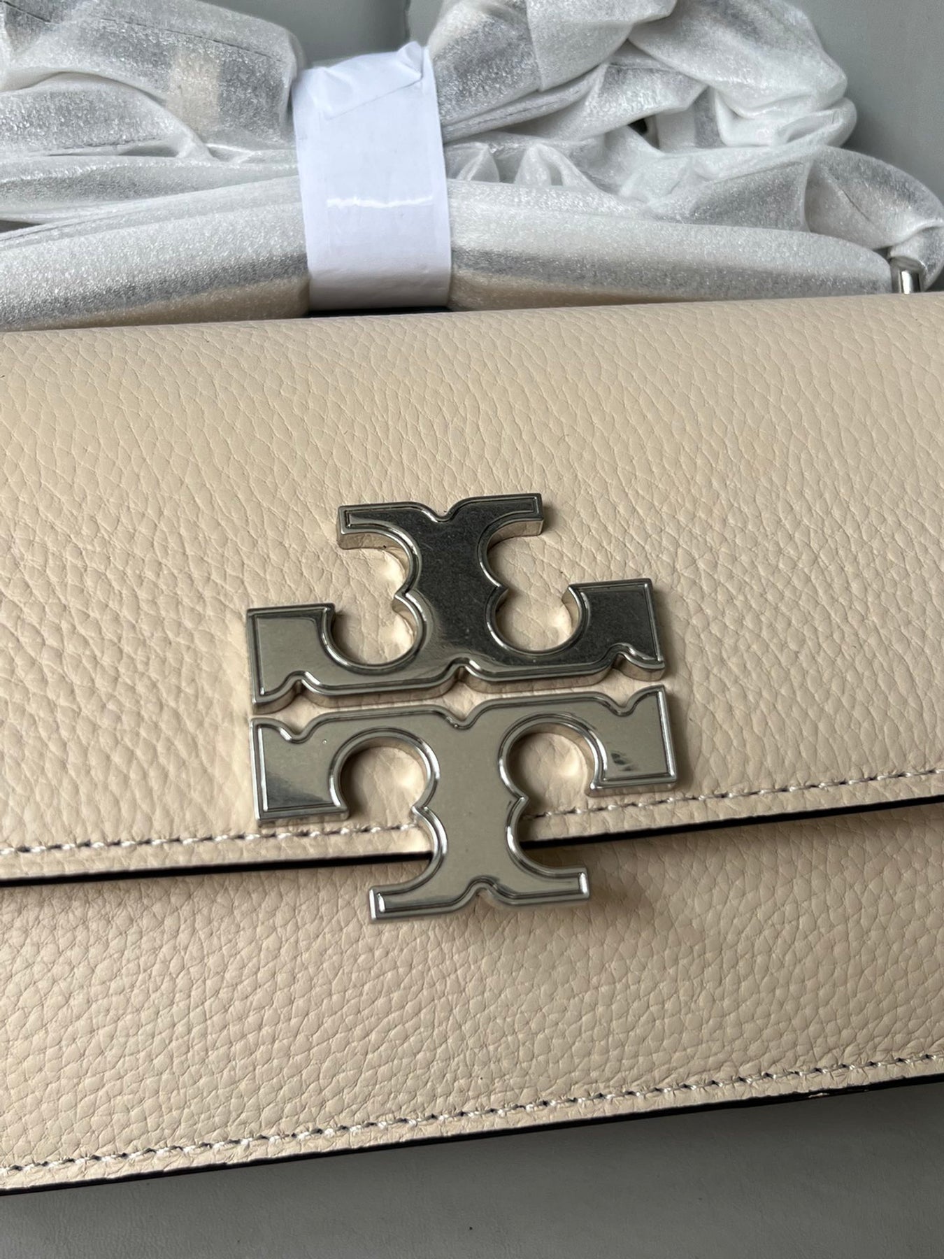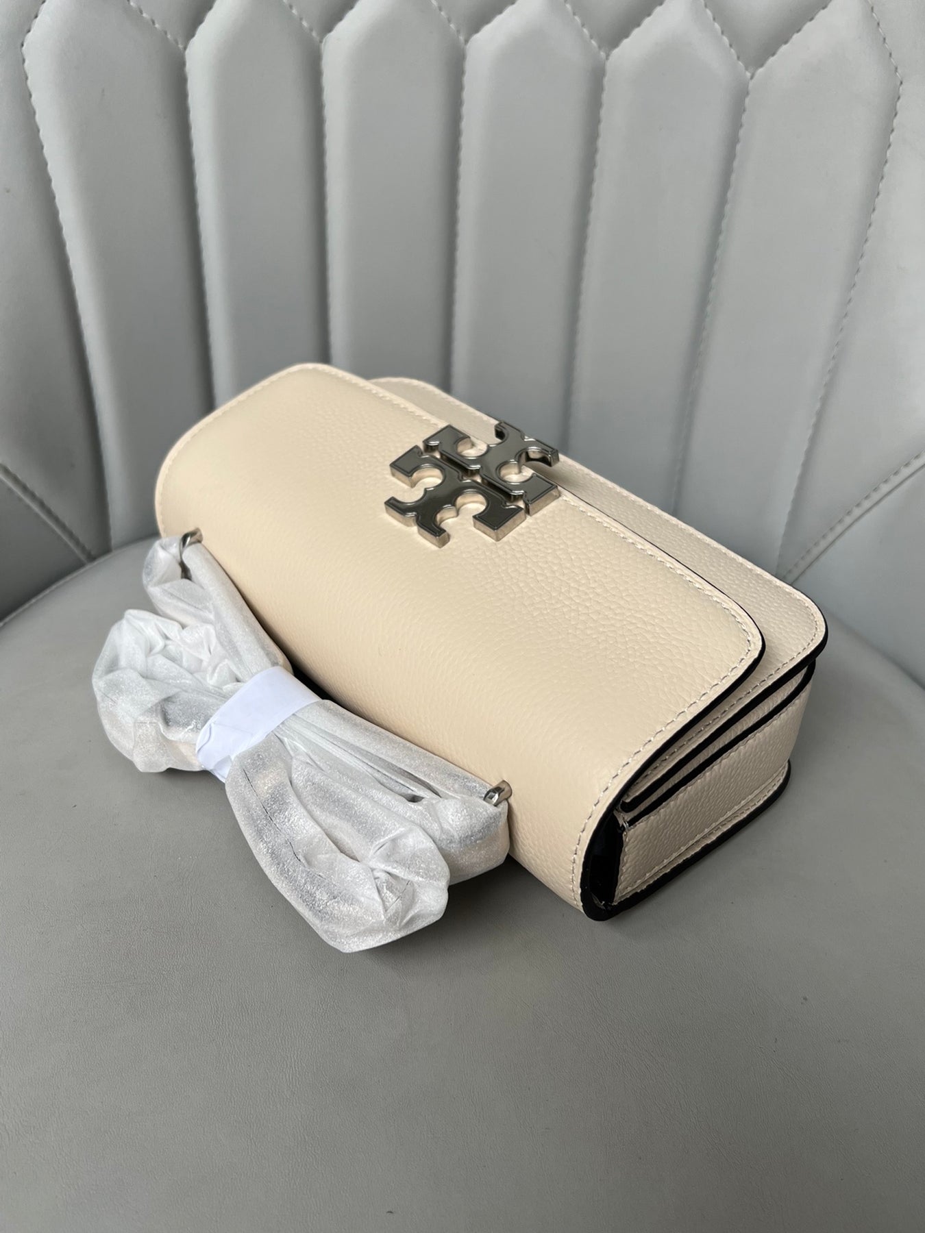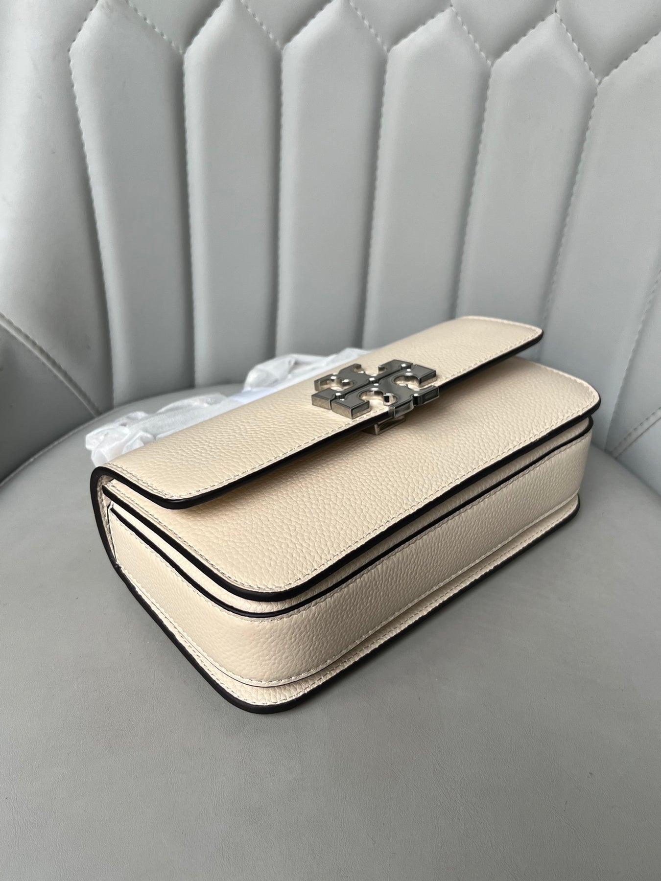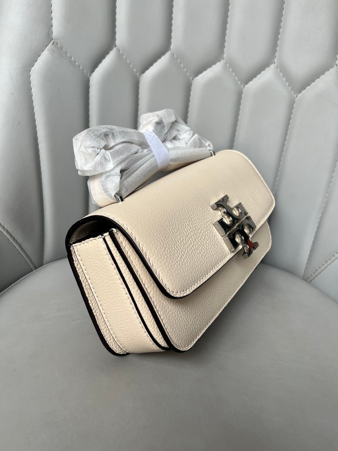 Introducing the Tory Burch Eleanor Small Shoulder Bag, expertly crafted from luxurious pebbled leather for a sophisticated look. This elegant accessory features a sleek design complemented by refined hardware, making it the perfect companion for any occasion.