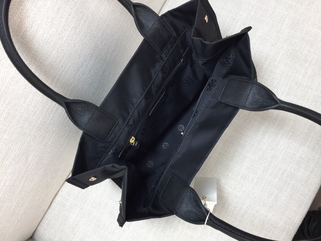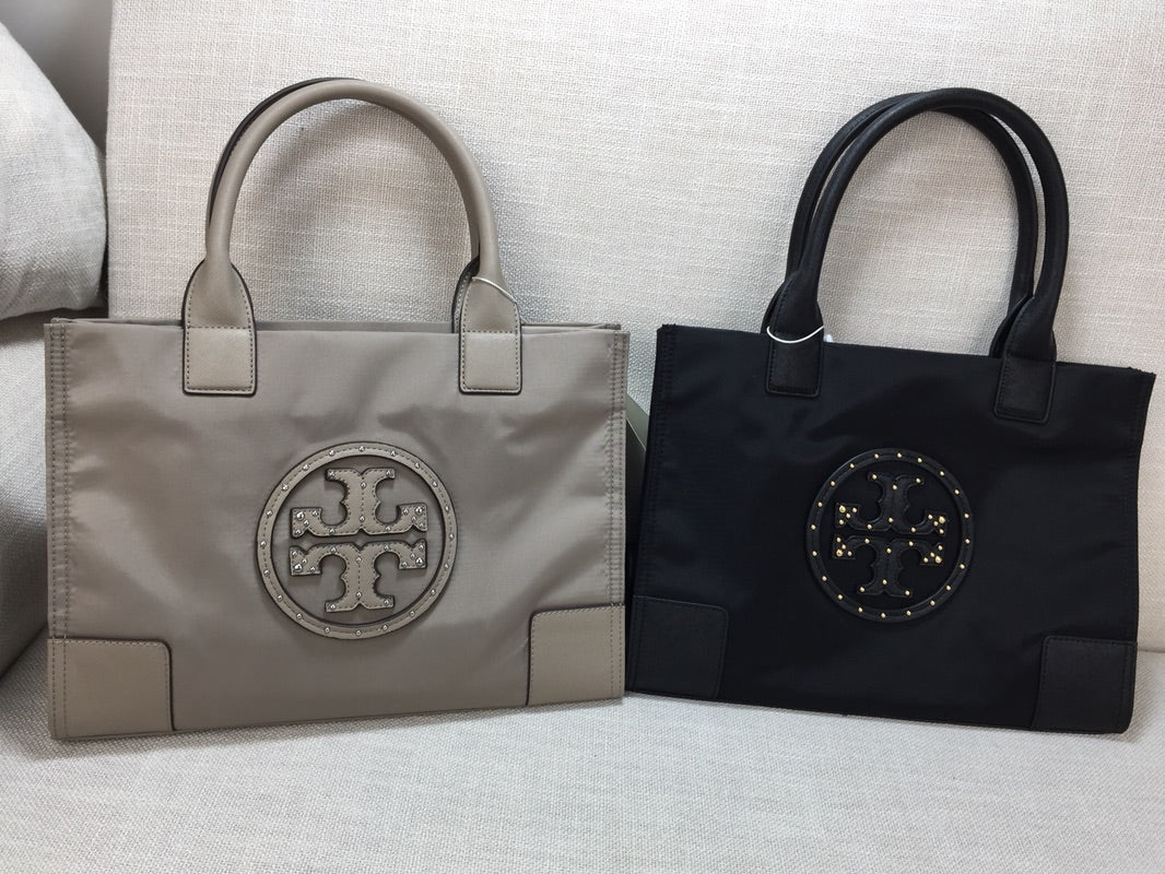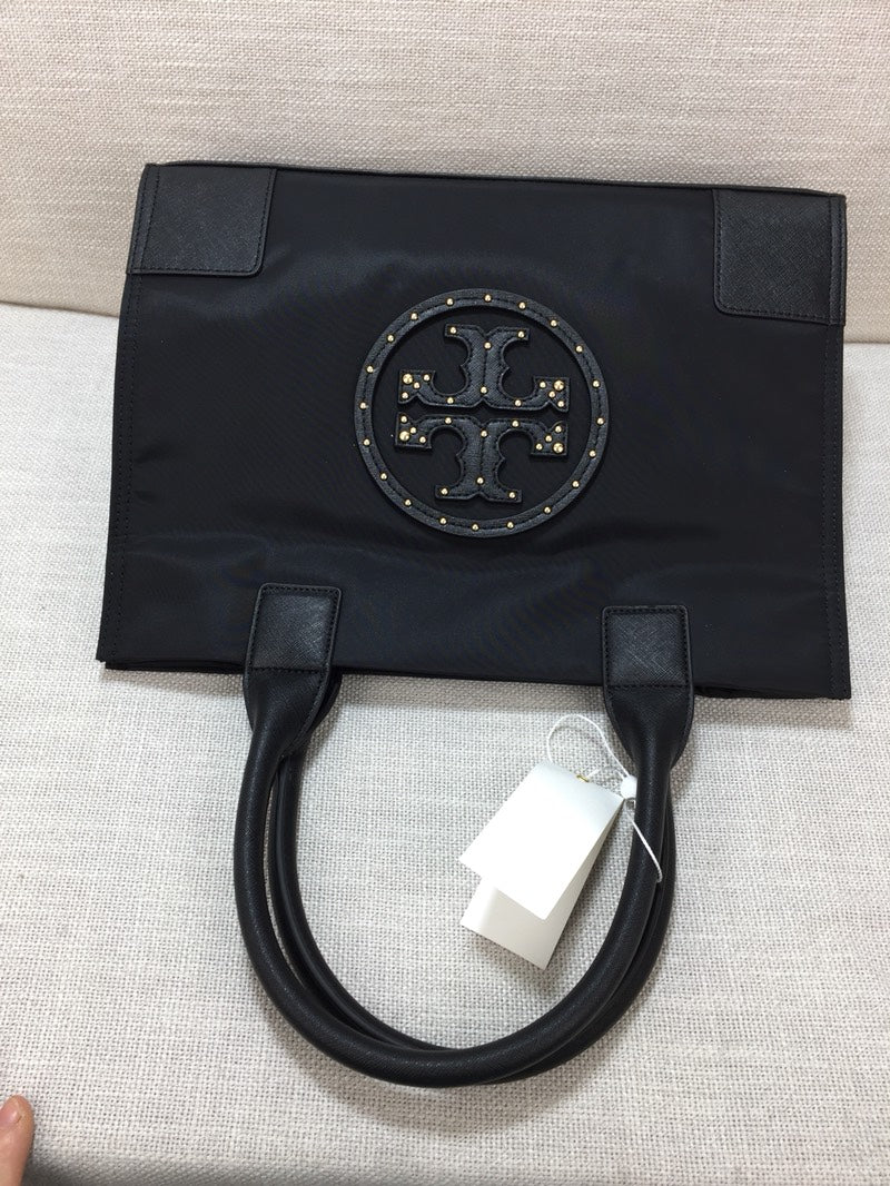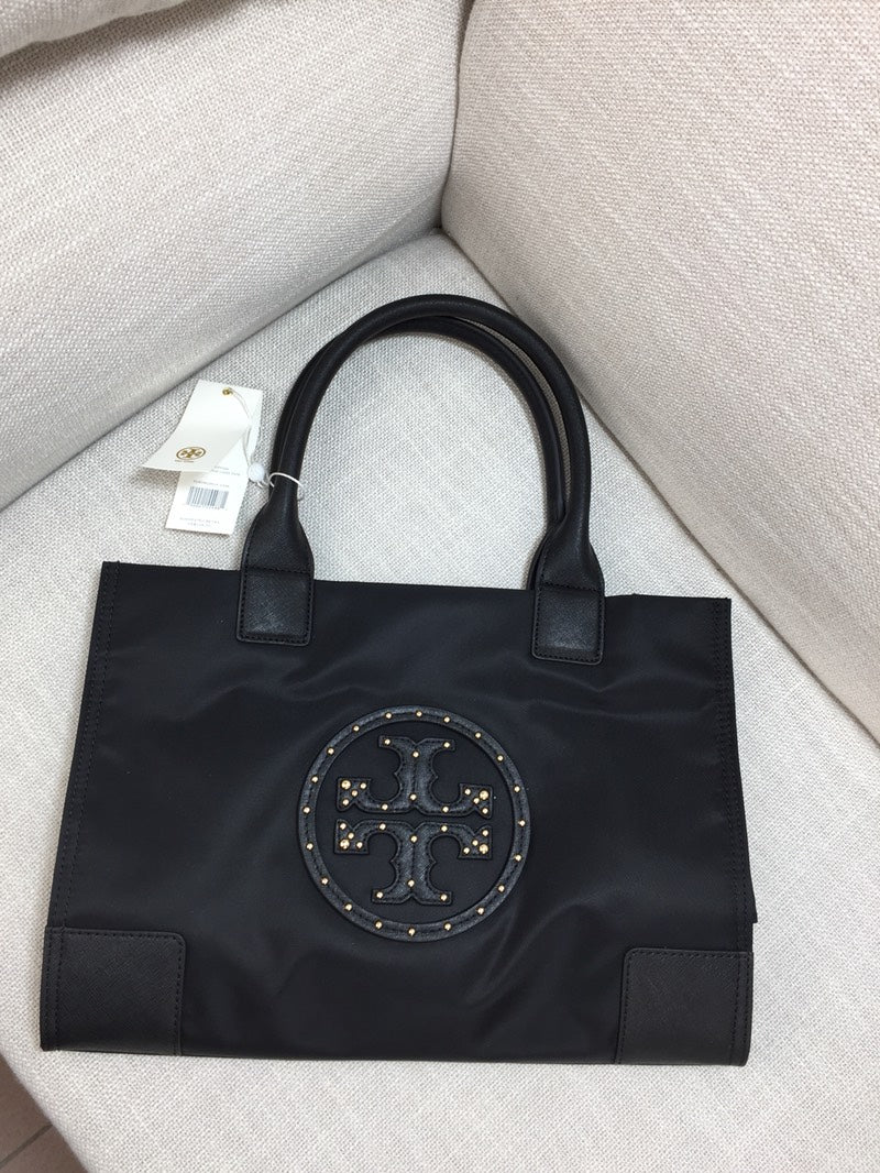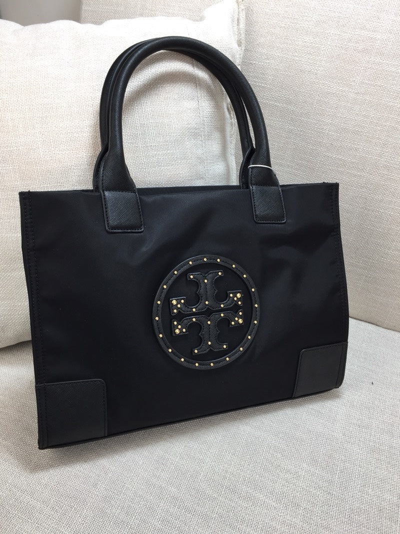 Tory Burch Ella Stud Tote - Small Black and Gray Nylon Shopping Bag
