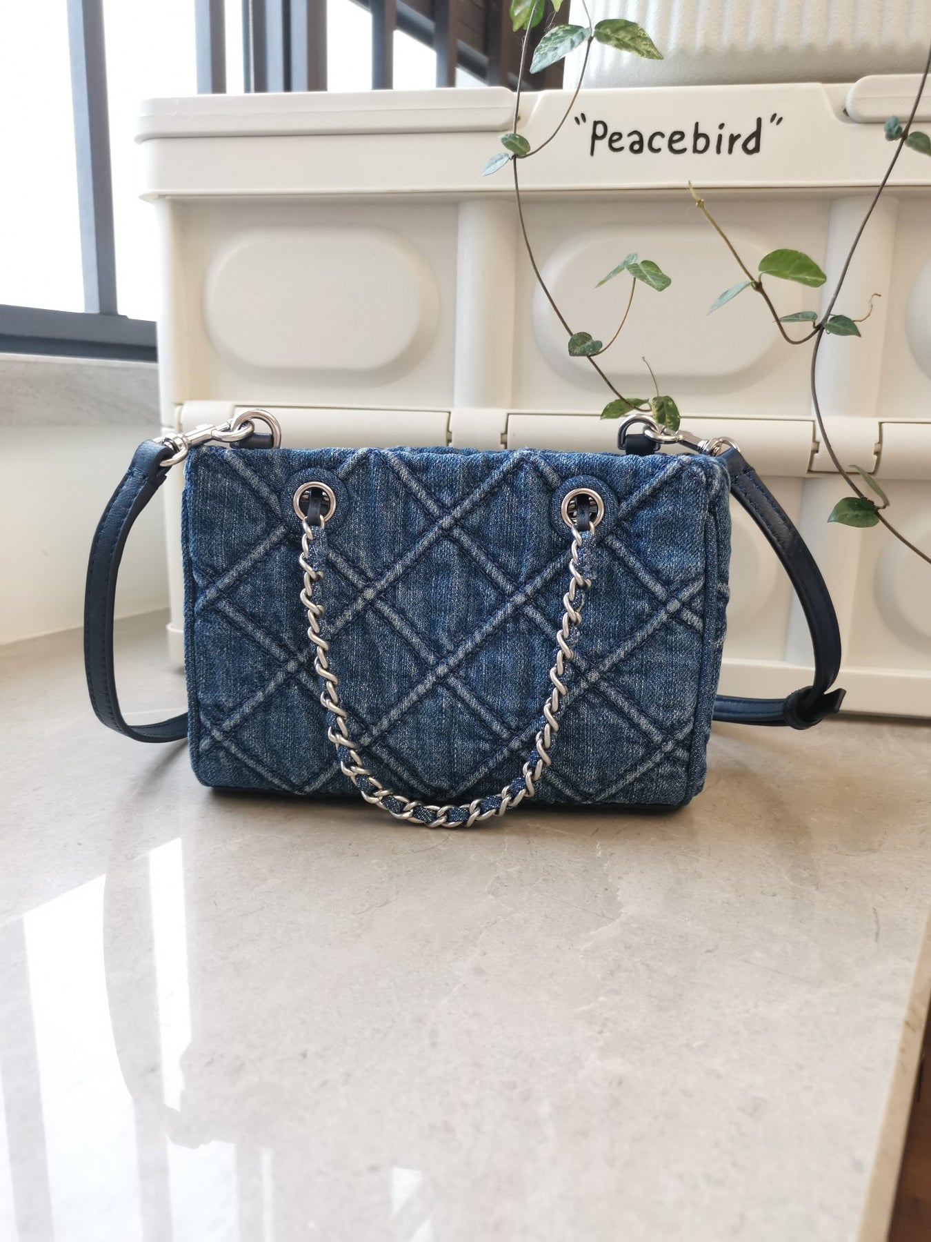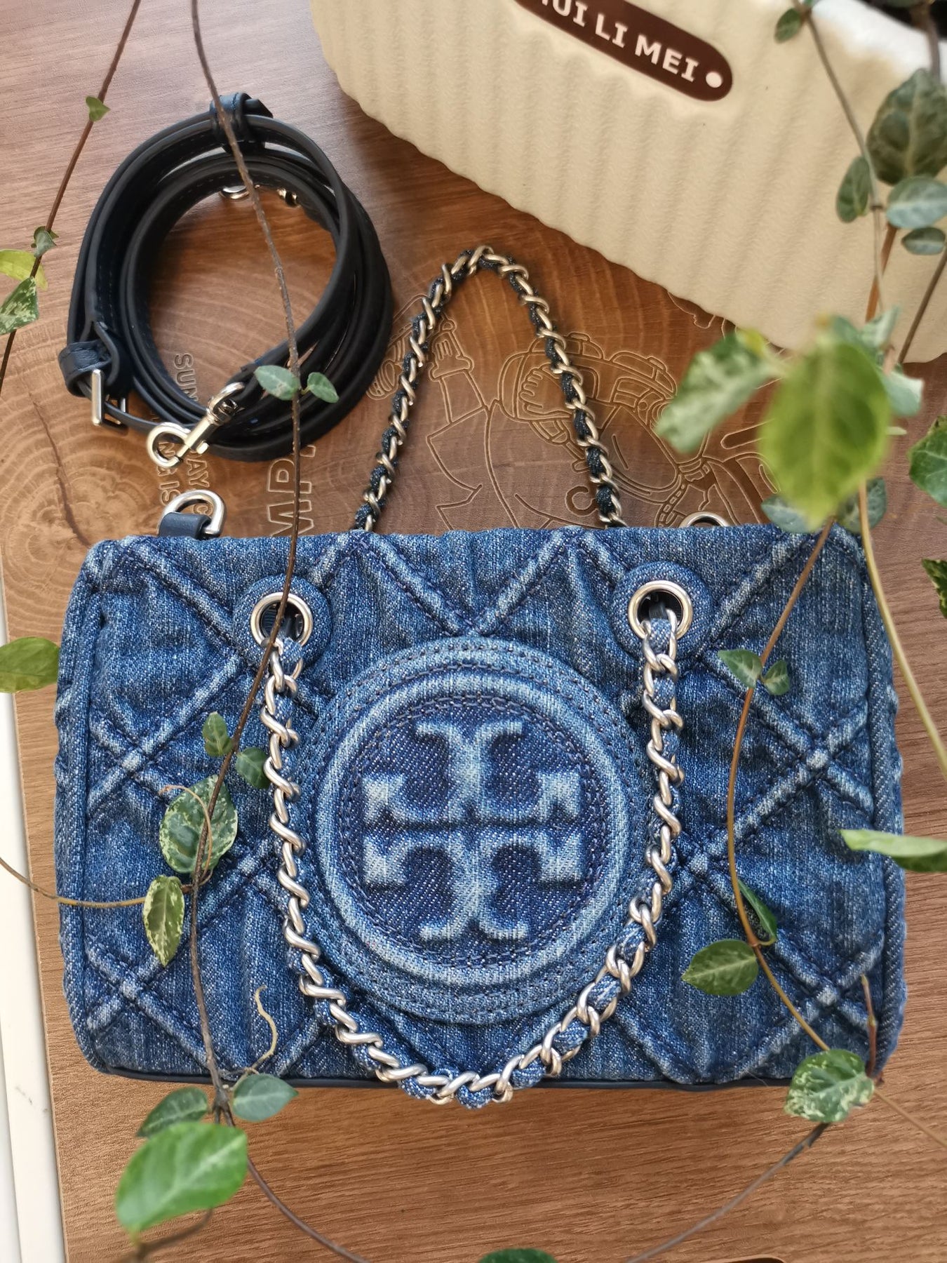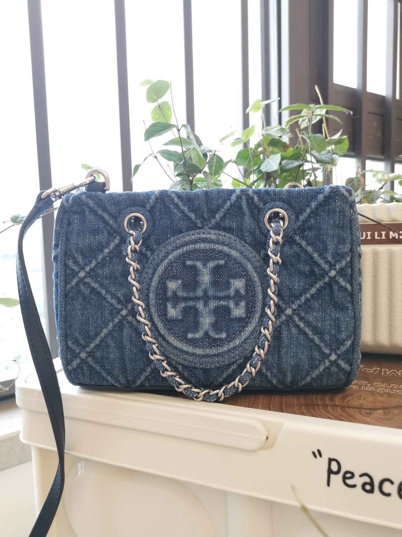 Discover the elegance of the Tory Burch Fleming Classic Mini Denim Chain Tote Bag. Crafted with premium denim, this chic tote features a sophisticated chain design and a spacious interior of 19" x 13" x 7", making it perfect for daily use or special occasions. Elevate your accessory collection with this stylish and versatile bag that combines luxury and practicality in one. Ideal for those who appreciate sophisticated design and exceptional craftsmanship.
