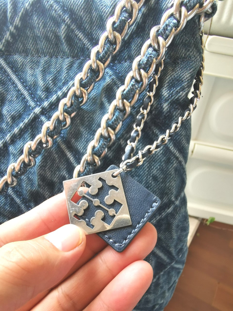 TORY BURCH Fleming Denim Blue Sheepskin Shoulder Bag