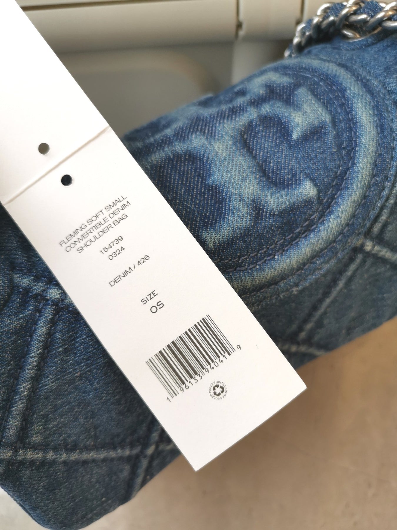 Elevate your accessory collection with the Tory Burch Fleming Soft Denim Convertible Shoulder Bag—ideal for any occasion.