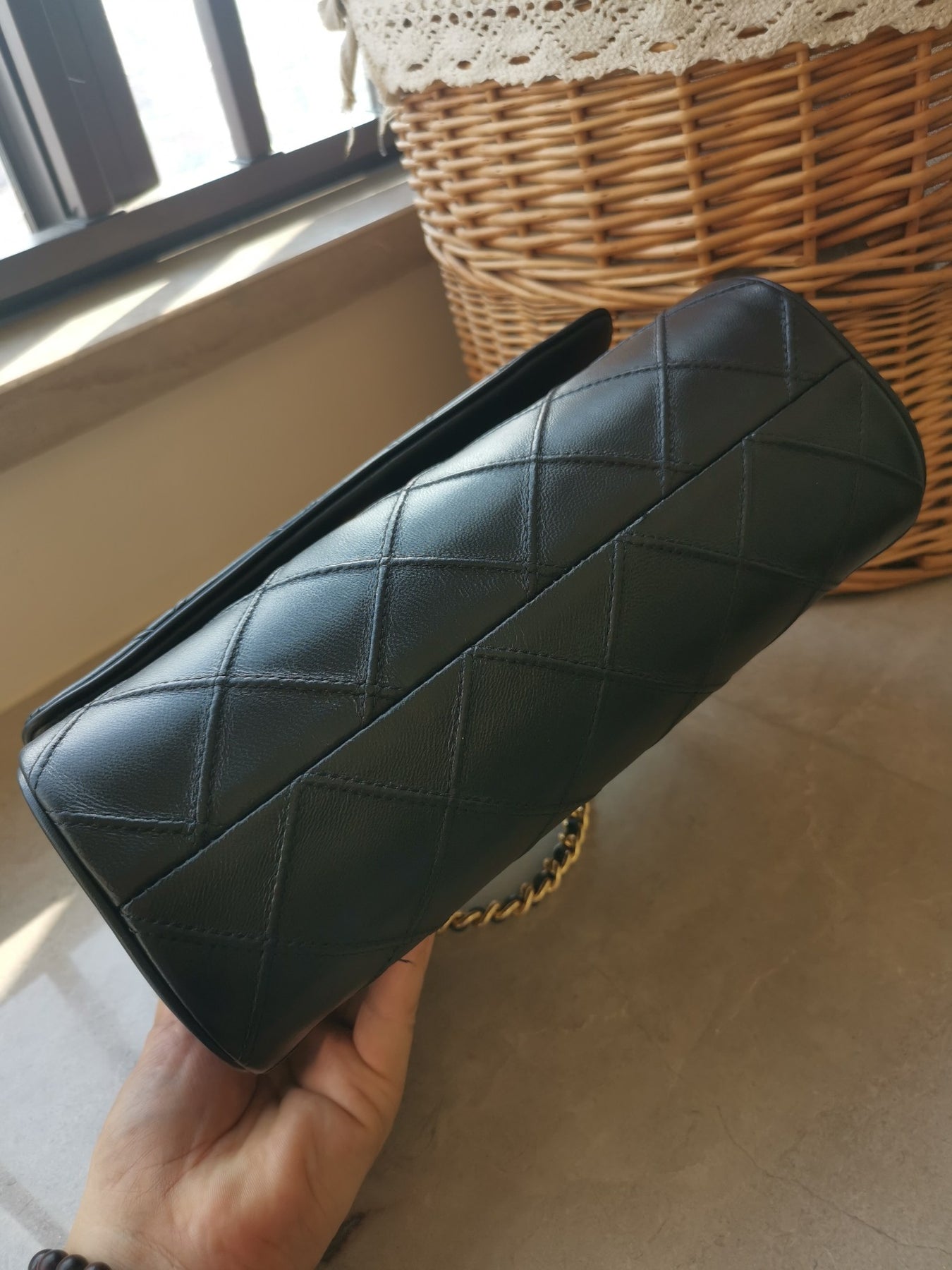 The versatile adjustable shoulder strap is finished with a brushed braided chain, allowing for multiple carrying options. With dimensions of 17.5 cm in height, 27 cm in length, and 10 cm in depth, this bag is spacious yet compact.