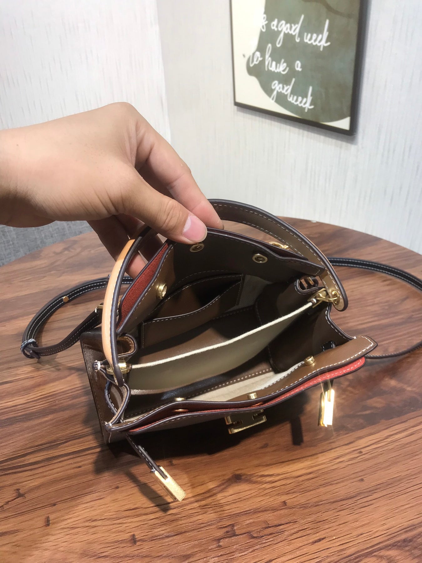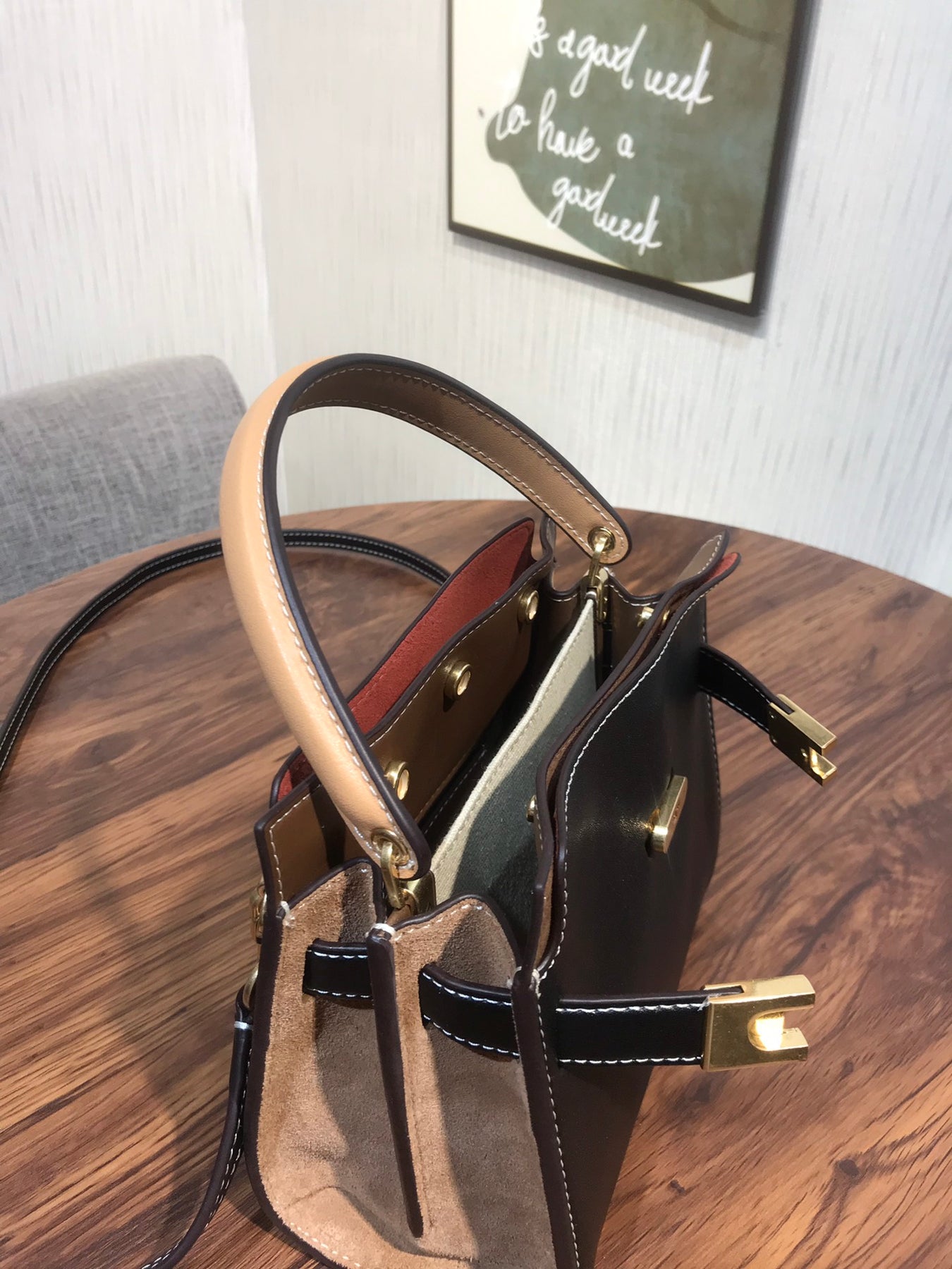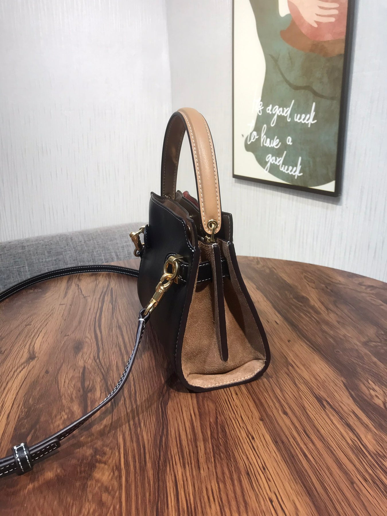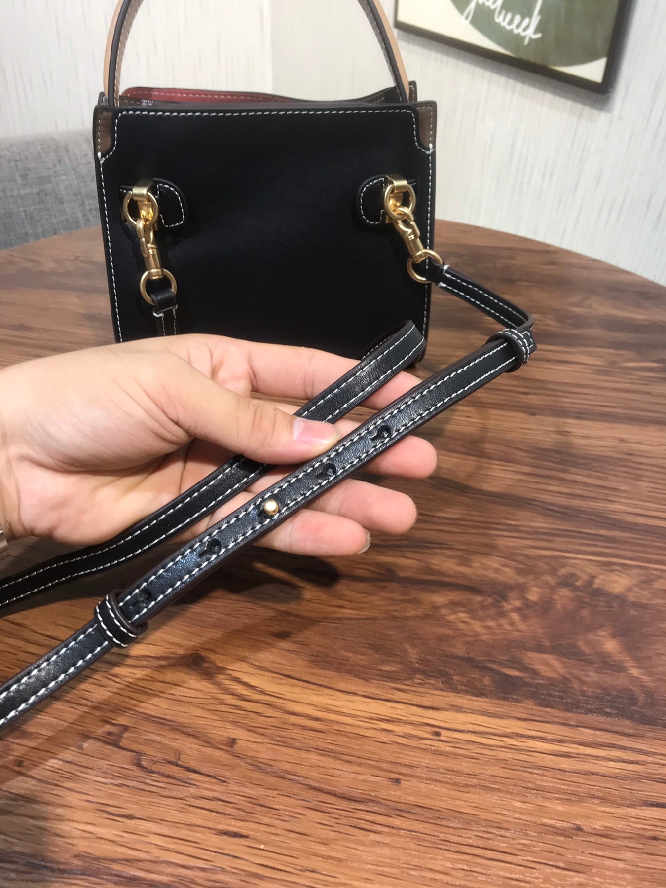 Introducing the Tory Burch Lee Radziwill Petite Double Bag in elegant black. This charming mini bag is a perfect blend of sophistication and functionality. With its innovative lock design and premium mixed materials, it exudes a unique allure. Its compact size (19 x 16.5 x 8.5 cm) ensures it remains lightweight while providing ample space for essentials. Versatile and stylish, this bag effortlessly complements any outfit, making it an ideal choice for various occasions. Elevate your summer wardrobe with this exquisite piece from Tory Burch.