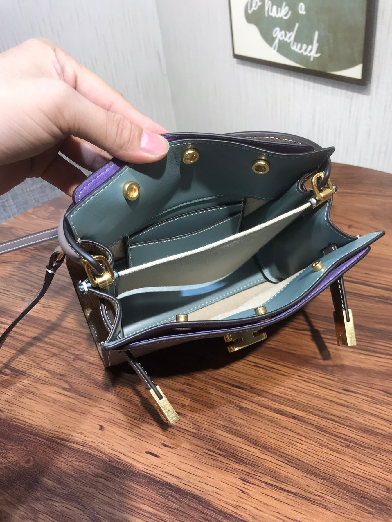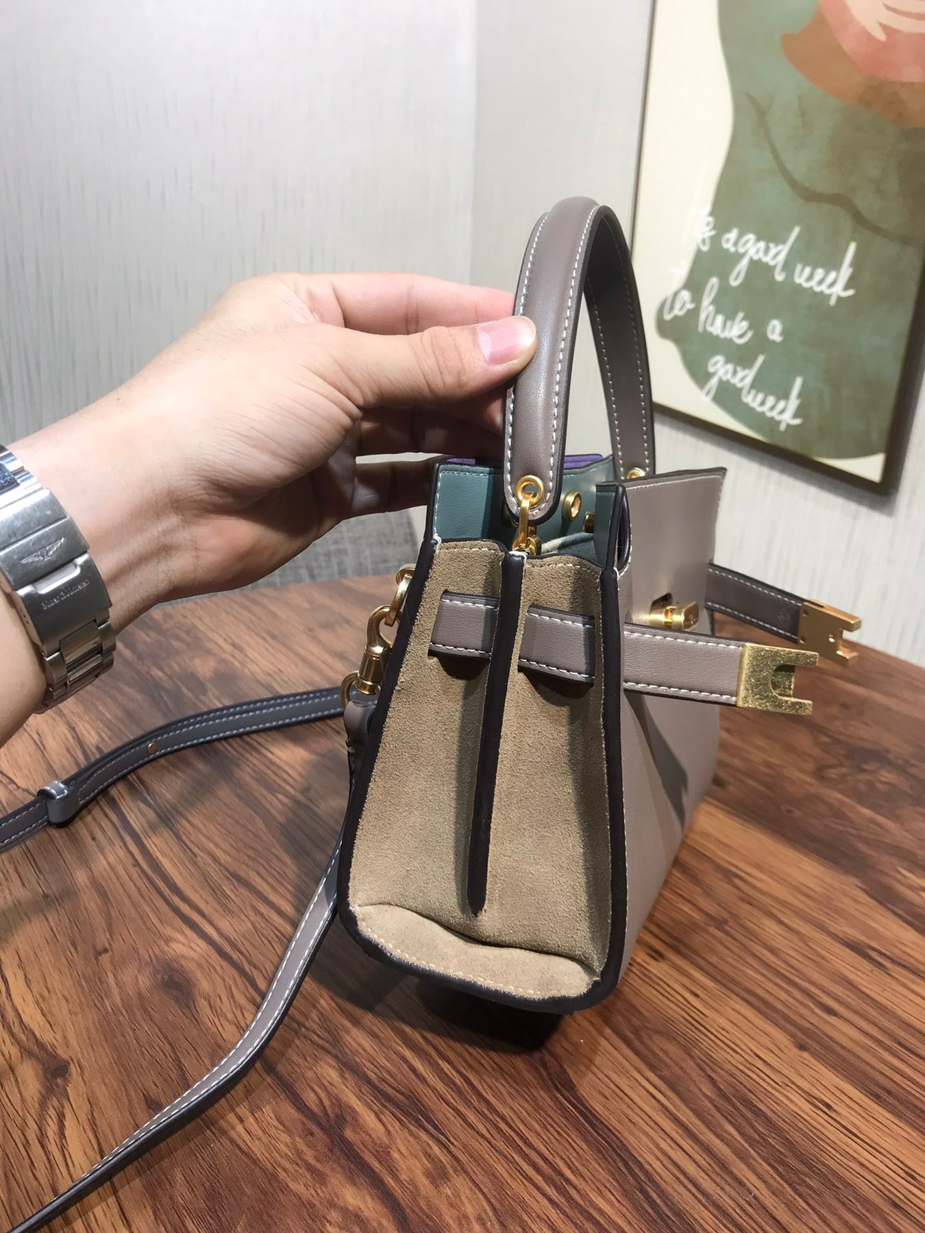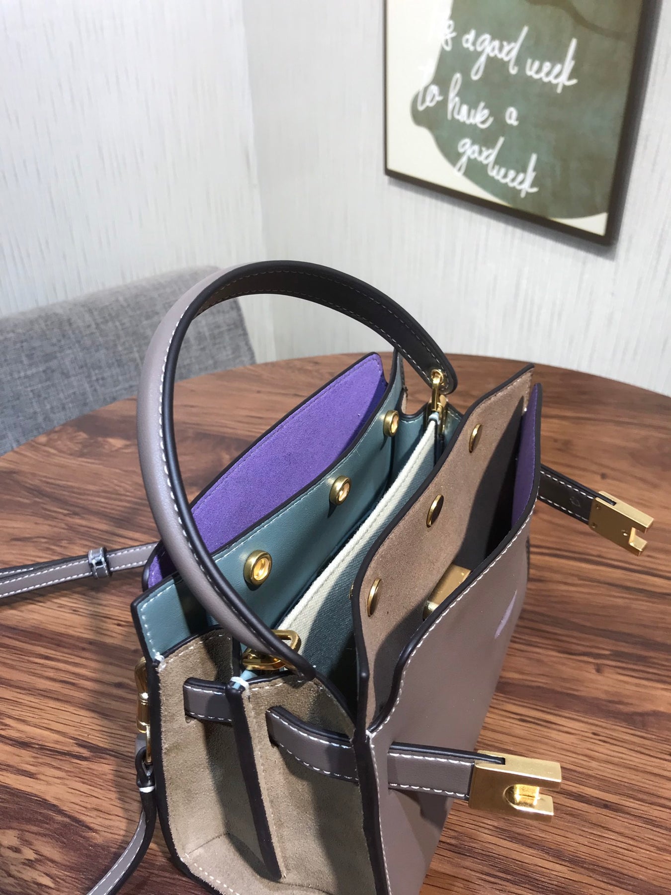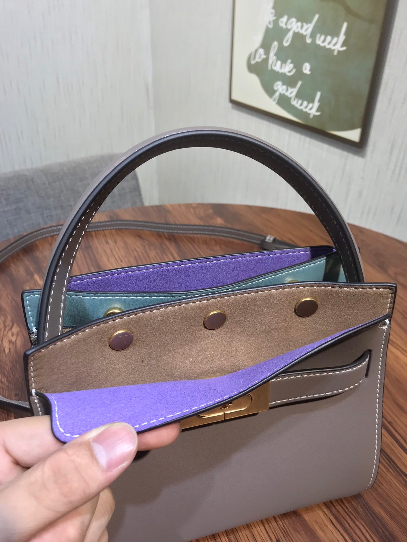 Introducing the Tory Burch Lee Radziwill Petite Double Bag in Grey - a charming mini bag that combines elegance with versatility. This exquisite accessory features a distinctive lock design and is crafted from mixed materials, showcasing a perfect blend of style and functionality. With dimensions of 19 x 16.5 x 8.5 cm, it's compact yet spacious enough to hold your essentials. Whether you're dressing up for a special occasion or keeping it casual, this mini bag complements any outfit effortlessly. Elevate your summer wardrobe with this quintessential piece from Tory Burch.