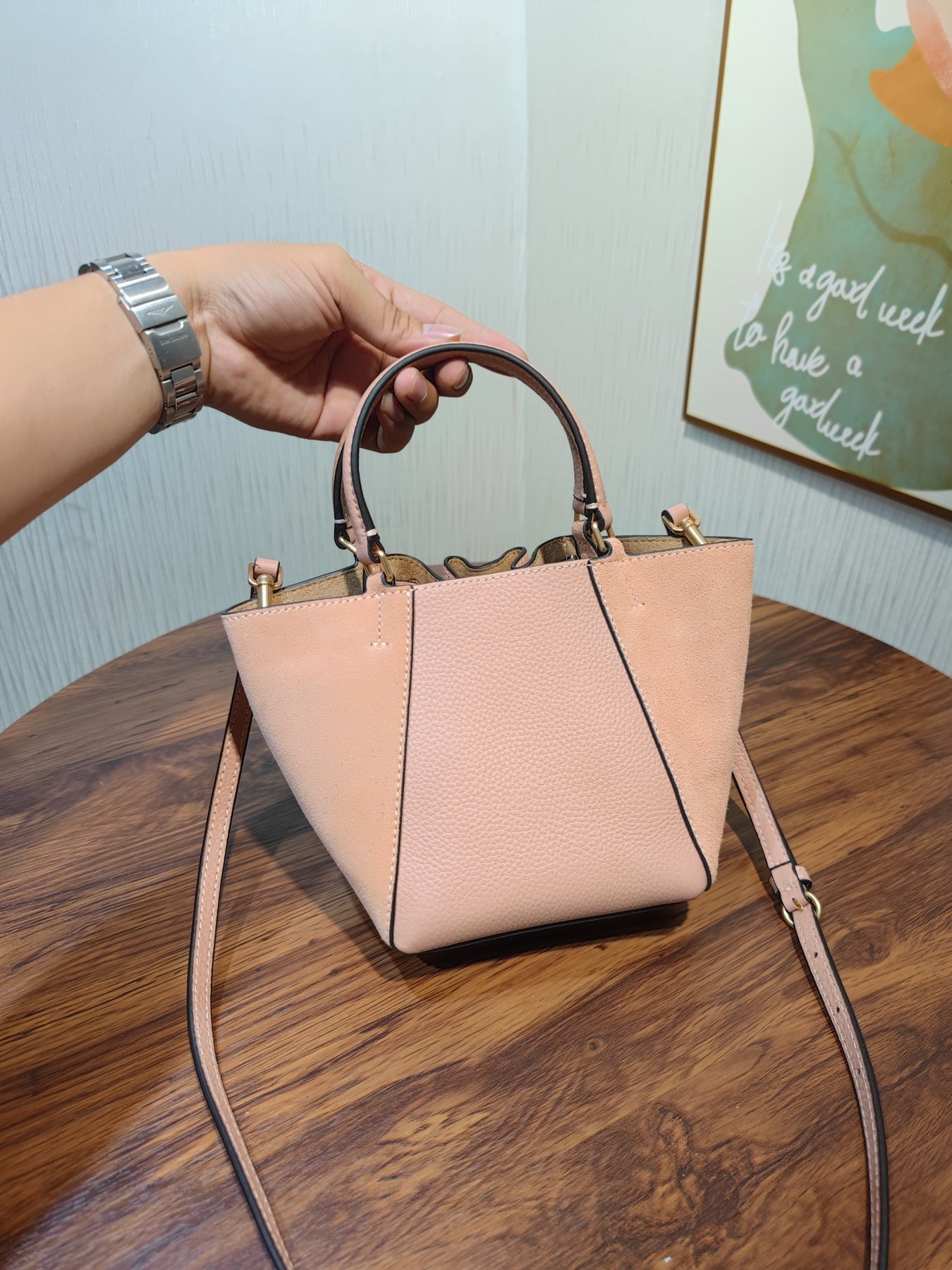 - Crafted from high-quality pebbled leather