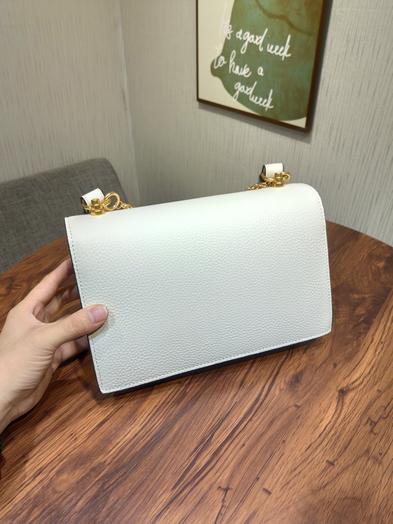 Introducing the Tory Burch Miller Large Shoulder Bag, crafted from premium Suzhi grain cowhide. This elegant bag features a distinctive double T logo and an adjustable, woven shoulder strap for versatile styling. The detachable chain strap adds a touch of sophistication inspired by jewelry, making this bag perfect for any occasion.