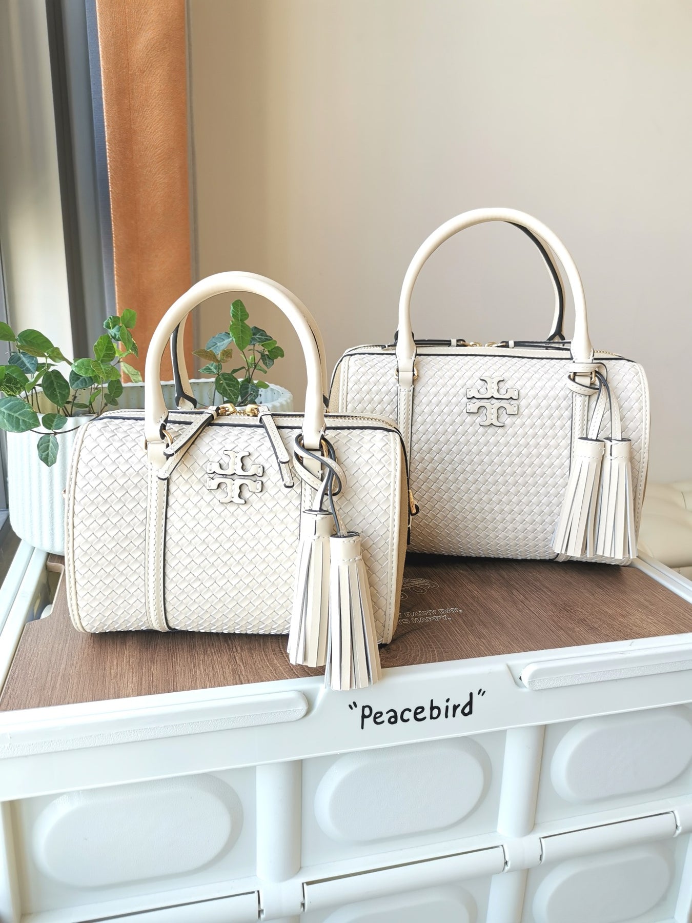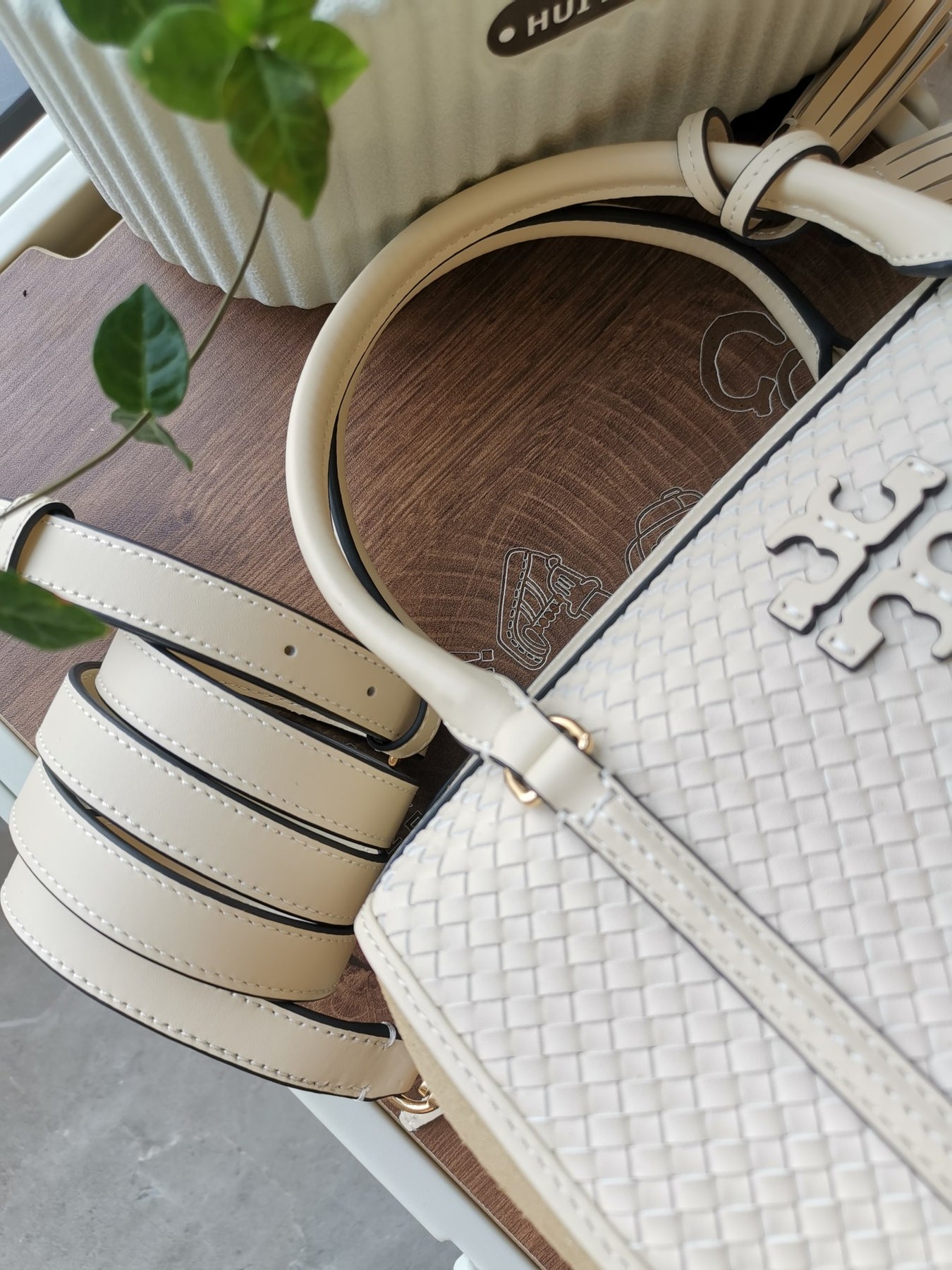 Elevate your style with the Tory Burch Thea Braided Boston Bag. Perfect for any occasion, this spacious bag measures 25cm x 17cm x 16cm, offering ample room for your essentials. The sophisticated braided detail adds a touch of elegance, making it a must-have accessory. Stand out from the crowd and carry it with pride, as it effortlessly complements the entire Thea collection. Embrace luxury and functionality in one chic design.