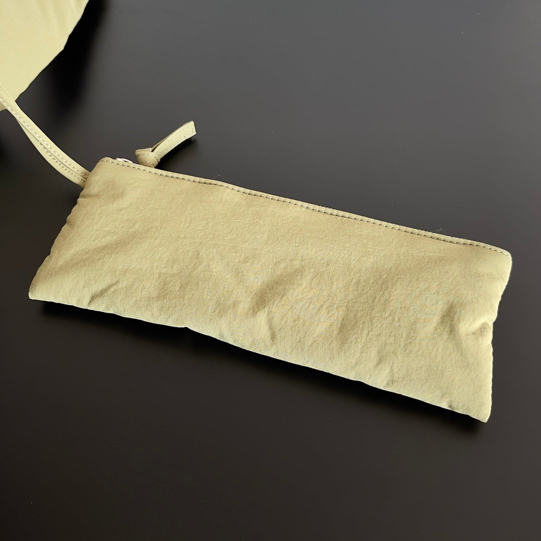 Introducing the Botega Veneta "Cassette Nylon Bag" in the stunning new color, Travertine Green. This stylish and versatile bag is designed for fashion enthusiasts who appreciate both elegance and functionality. Crafted from lightweight nylon, it offers a soft, waxy texture that elevates any outfit.