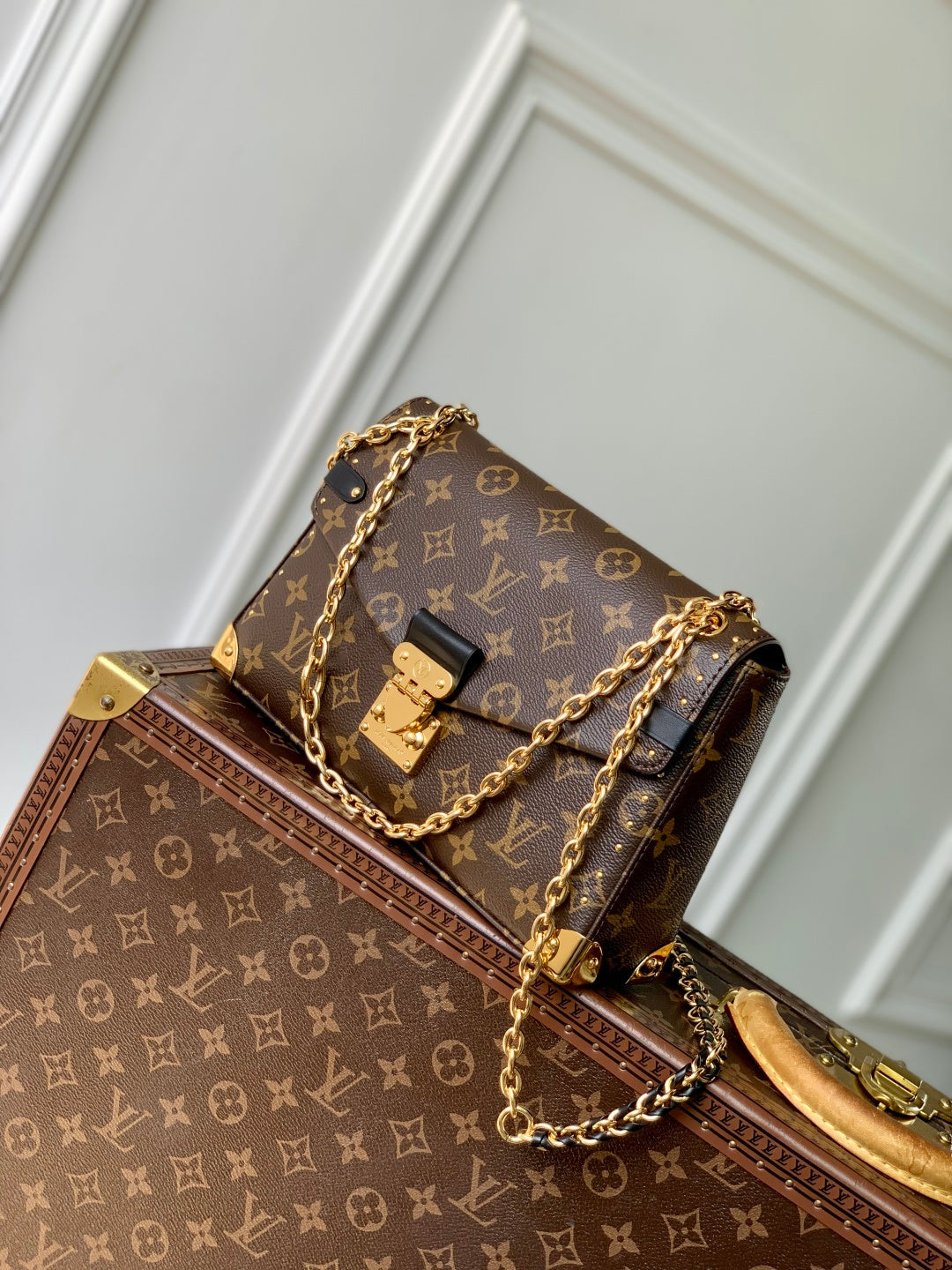 Introducing the Trunkie Handbag—a perfect blend of practicality and elegant design, paying tribute to the legacy of luxury. Crafted from signature Monogram canvas and adorned with 38 exquisite gold studs, this bag captures the spirit of Louis Vuitton's timeless travel aesthetic.