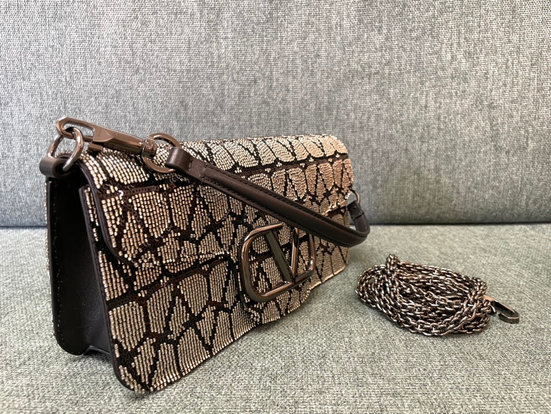 Elevate your accessory collection with the Valentino Garavani Miniloc Bag in sophisticated carbon gray calfskin. This luxurious bag features a striking metal VLogo Signature detail, showcasing timeless elegance and modern style.